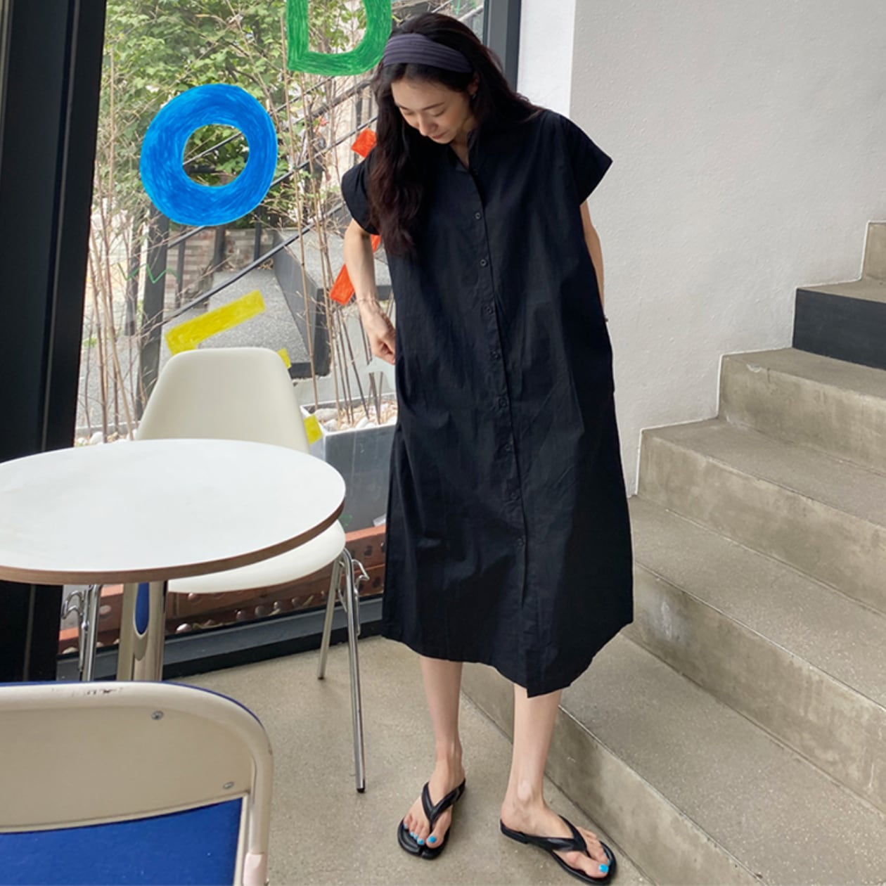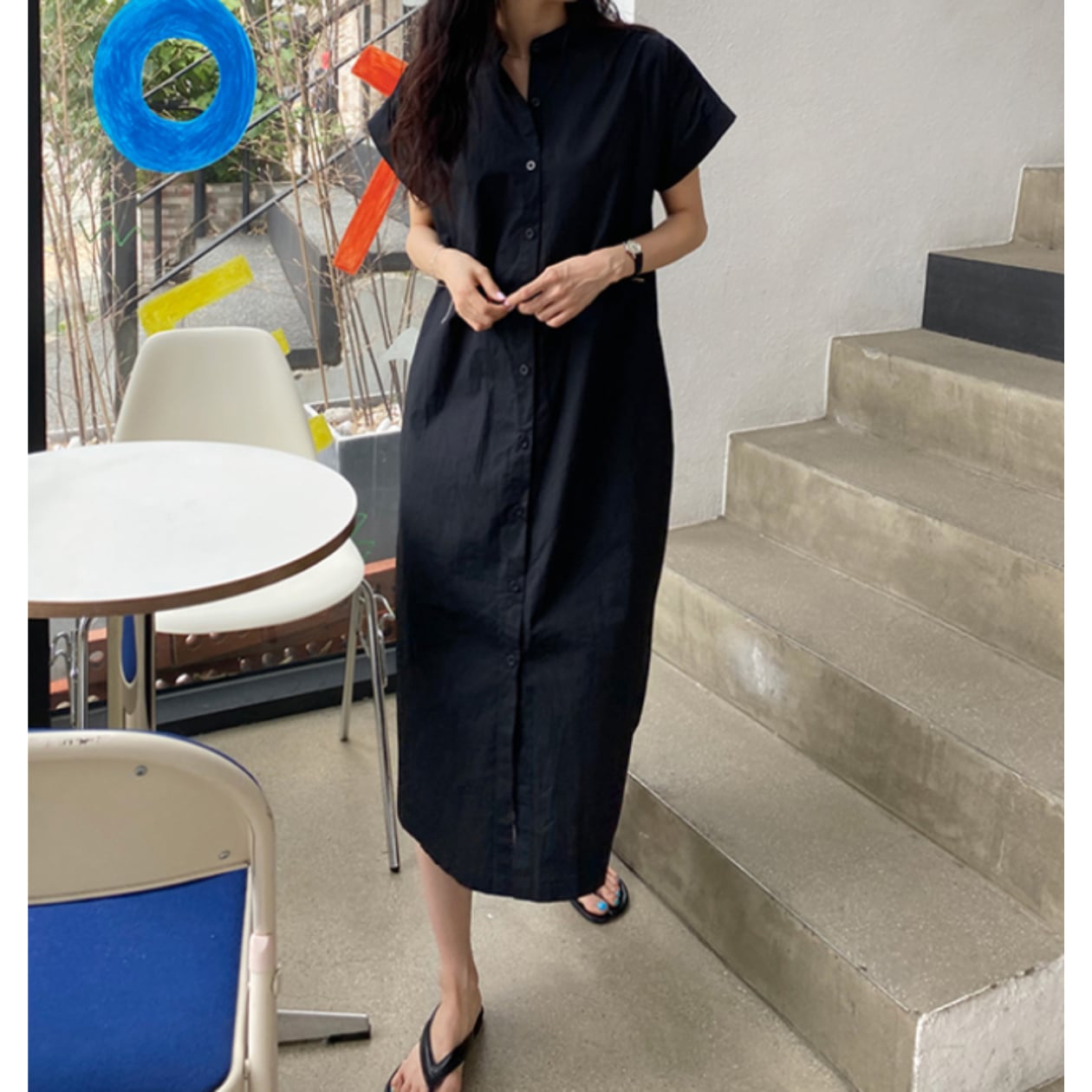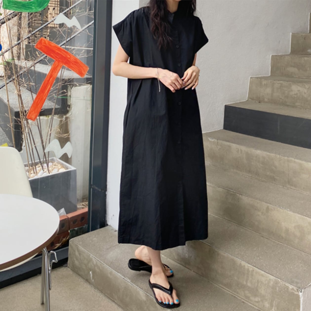 ロング丈のボタンダウンシャツワンピースは、一枚で着映えする優秀アイテムです!