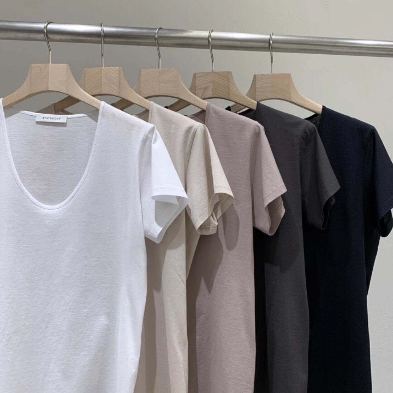 ベーシックUネックボックスシルエットショートスリーブTシャツは、一枚で着ても様になる、着回し力の高いアイテムです!