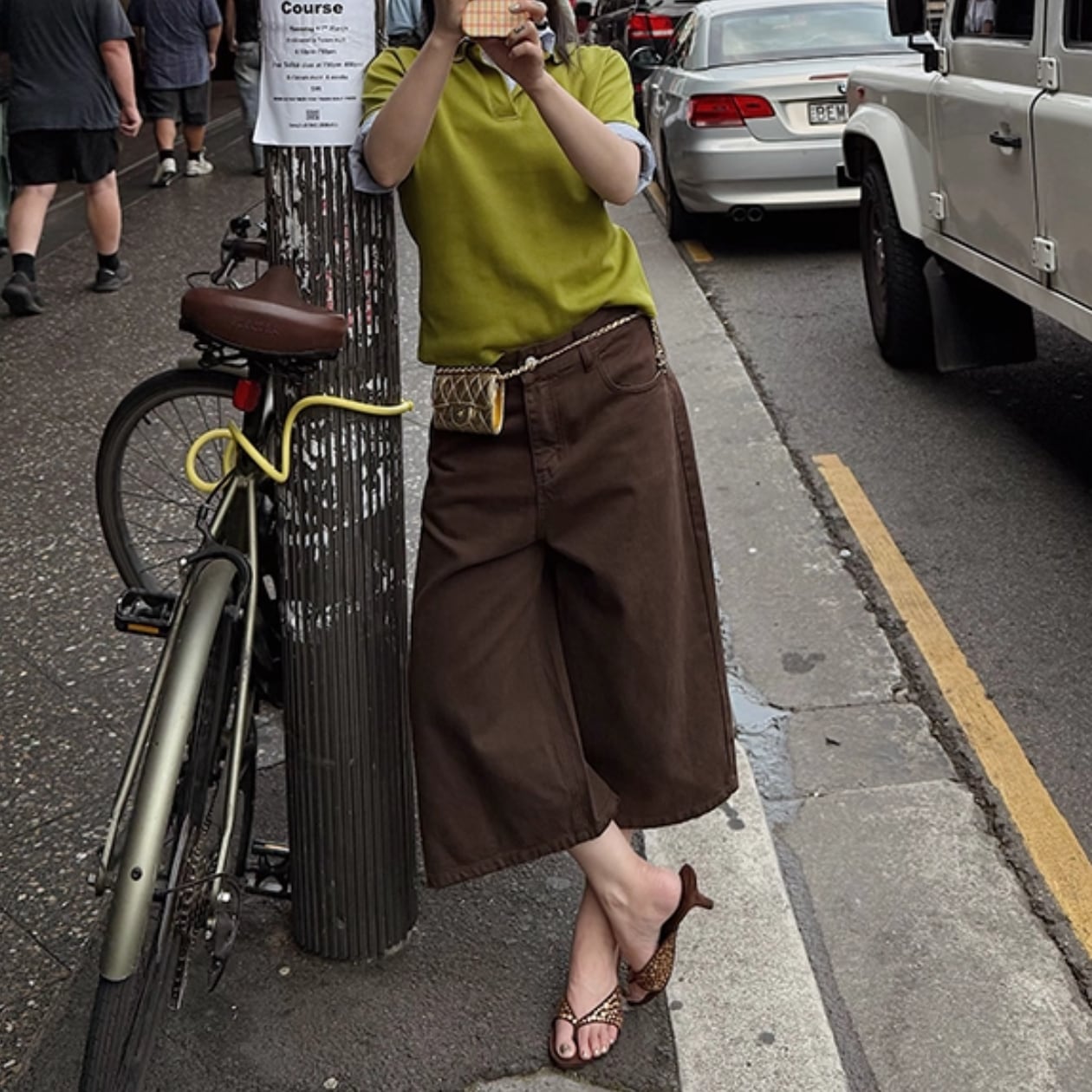 ハイウエストデザインでスタイルアップ効果抜群のワイドクロップドパンツ。