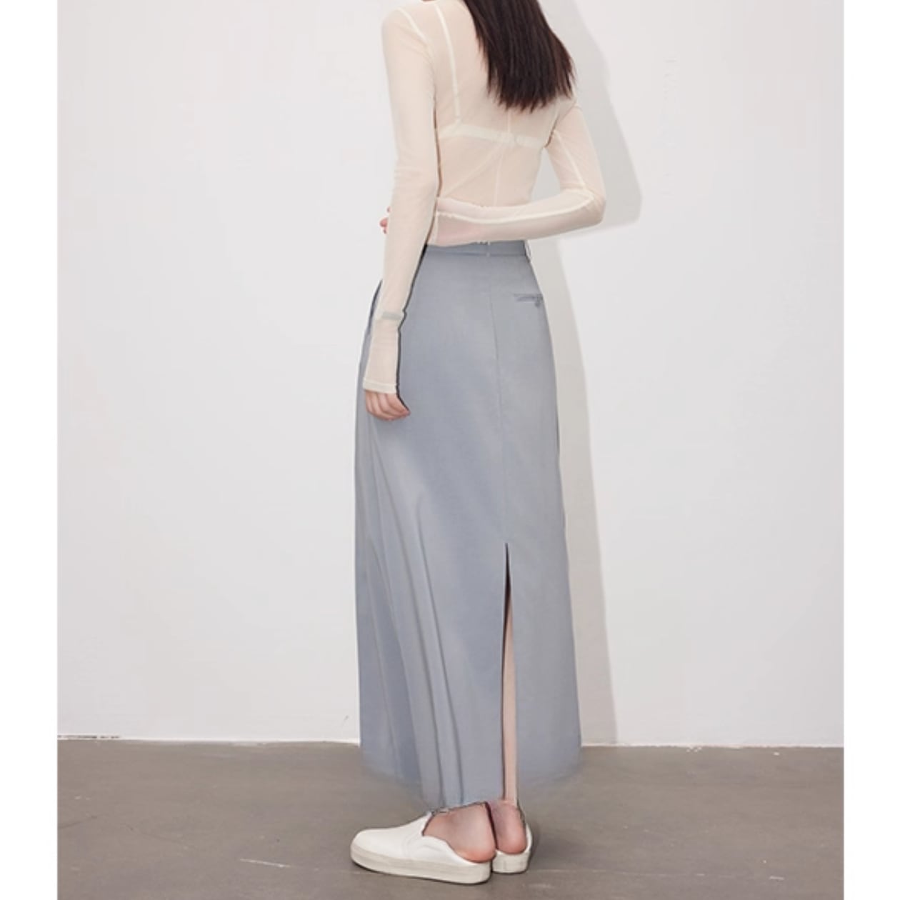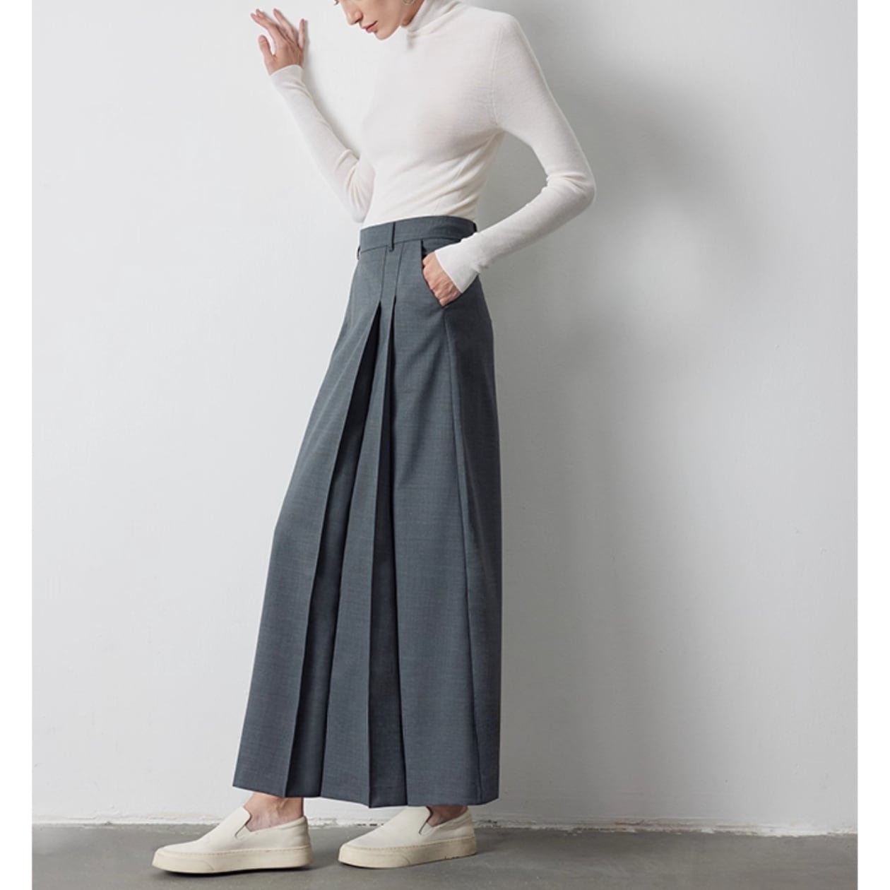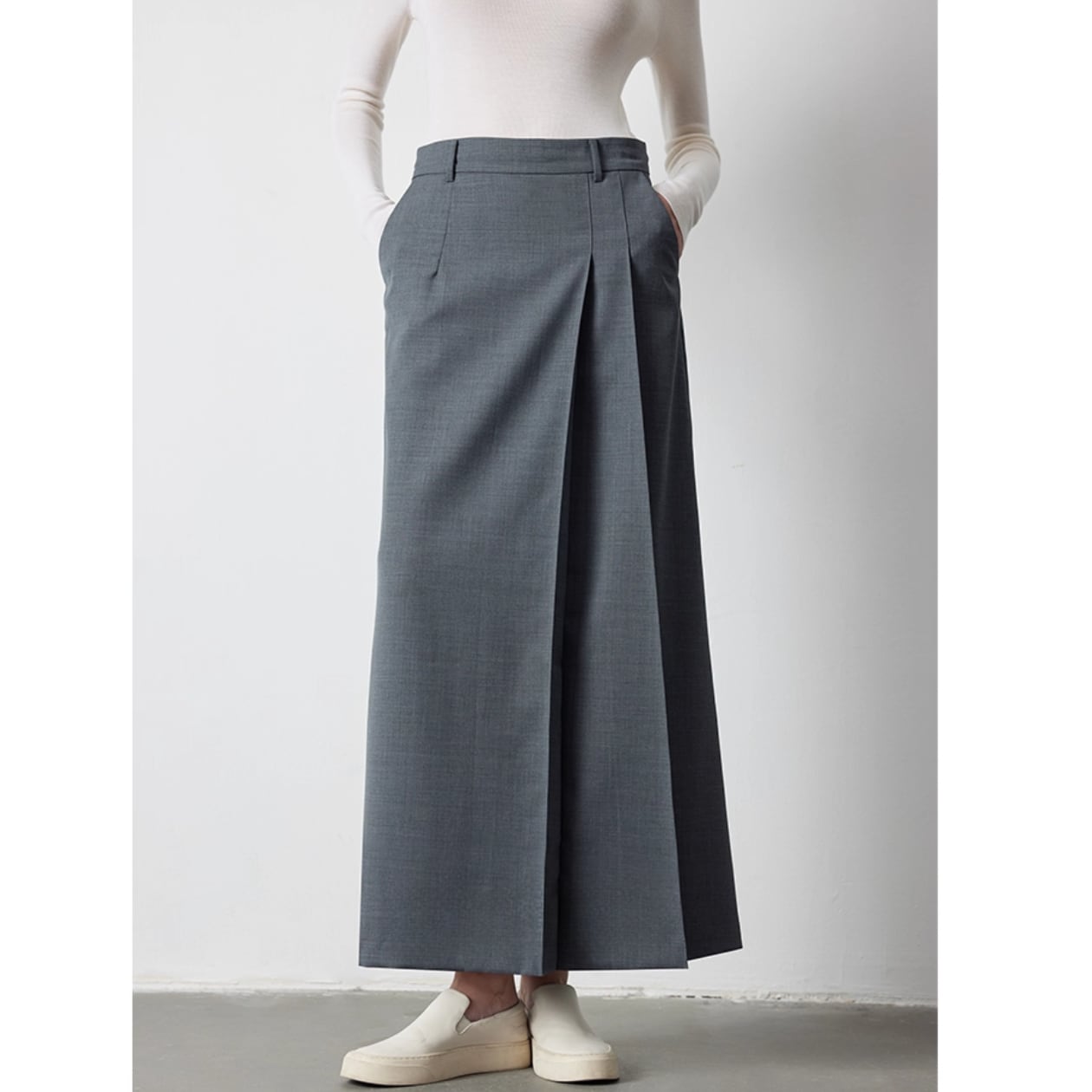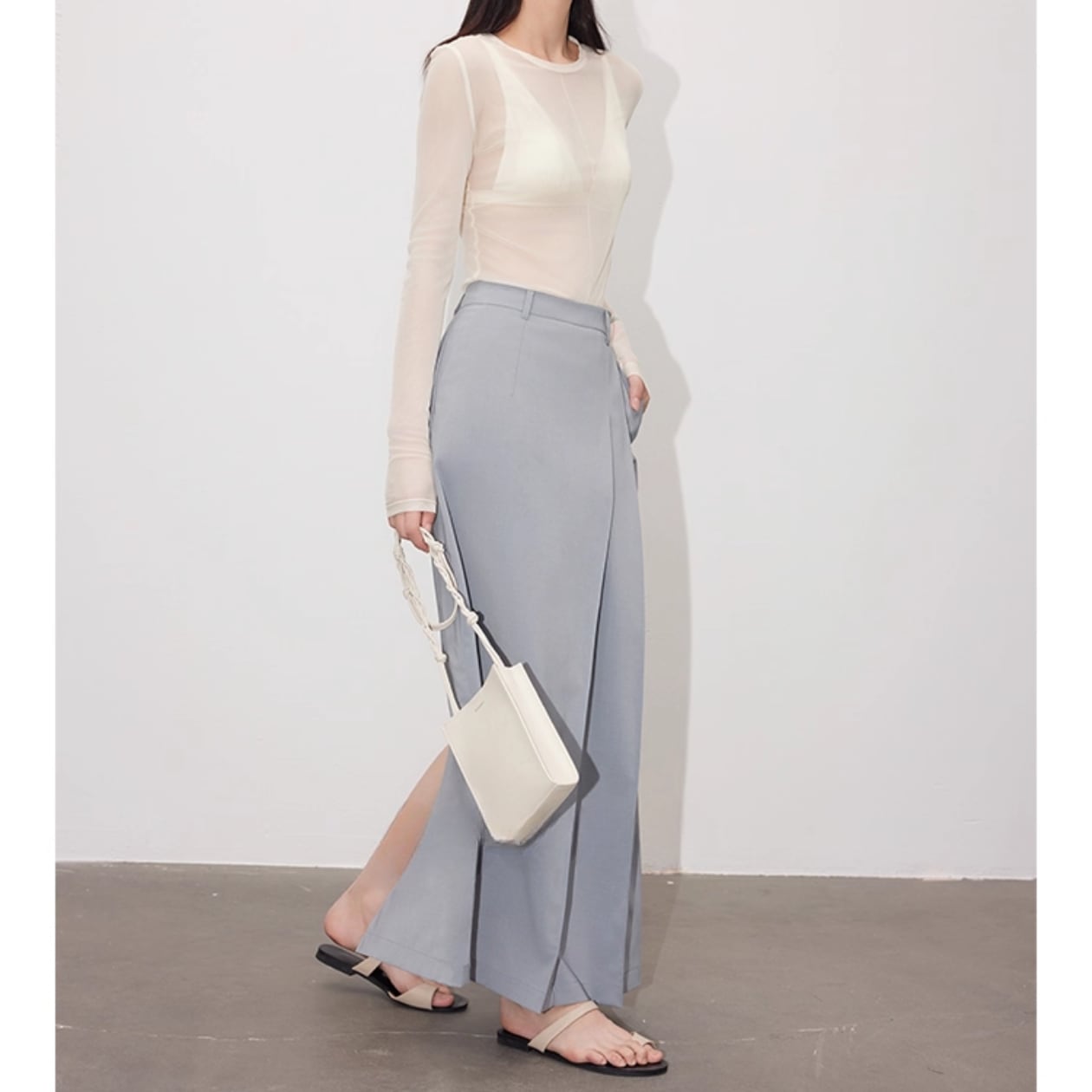 センタープレスハイウエストラップスカートは、ロング丈で洗練されたシルエットが魅力です!
