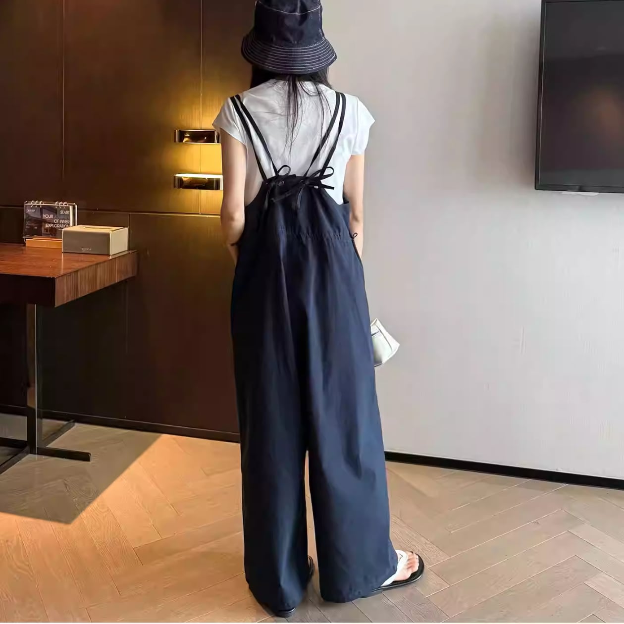 綿素材のハイウエストワイドレッグサロペットは、一枚で着映えする優秀アイテムです!