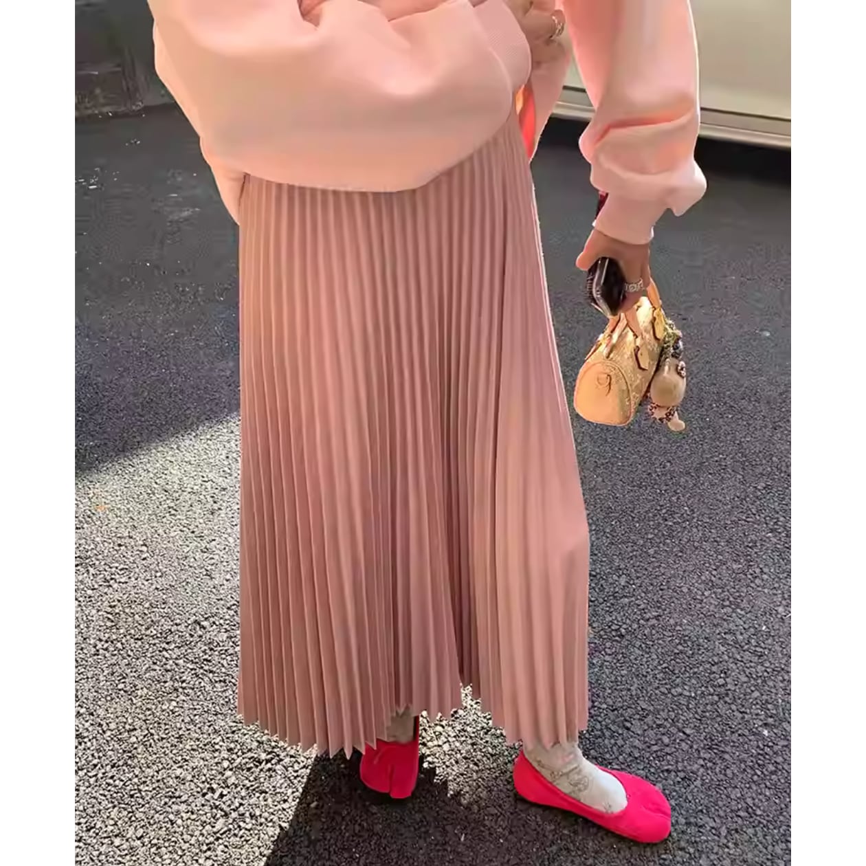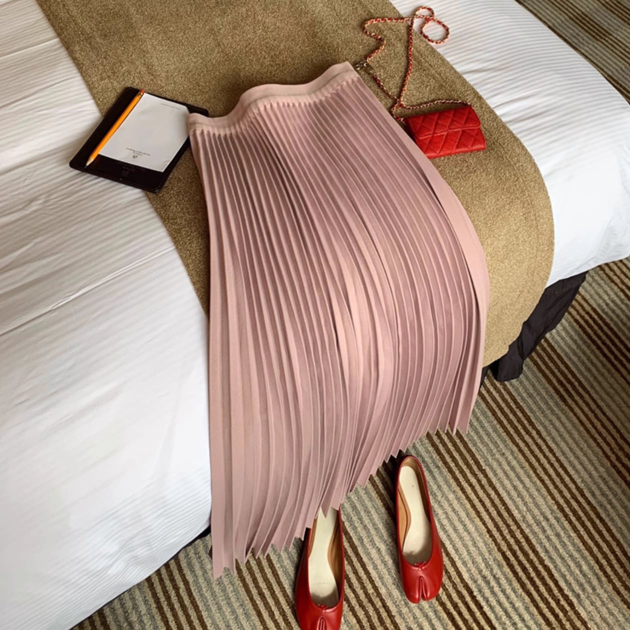 プリーツデザインのロング丈ハイウエストスカートは、一枚で着映えする優秀アイテム☆