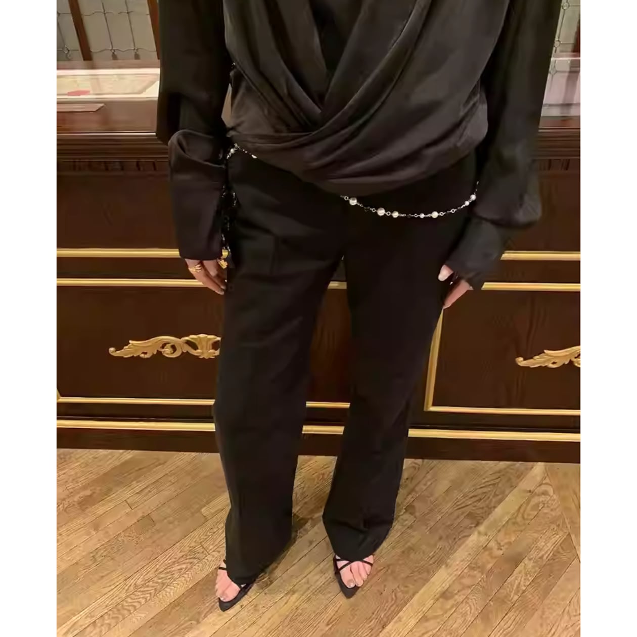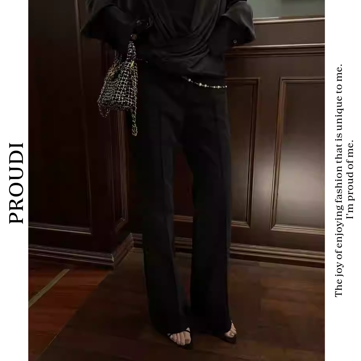 ハイウエストデザインで脚を長く、そしてワイドレッグシルエットで気になる部分をさりげなくカバー。