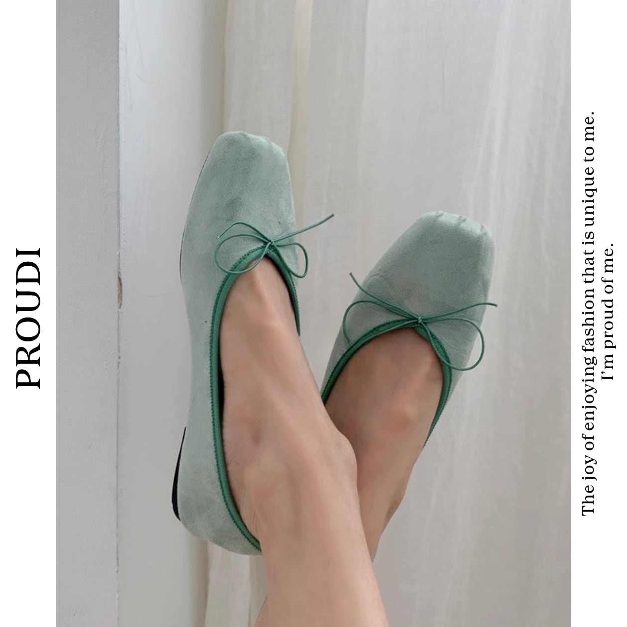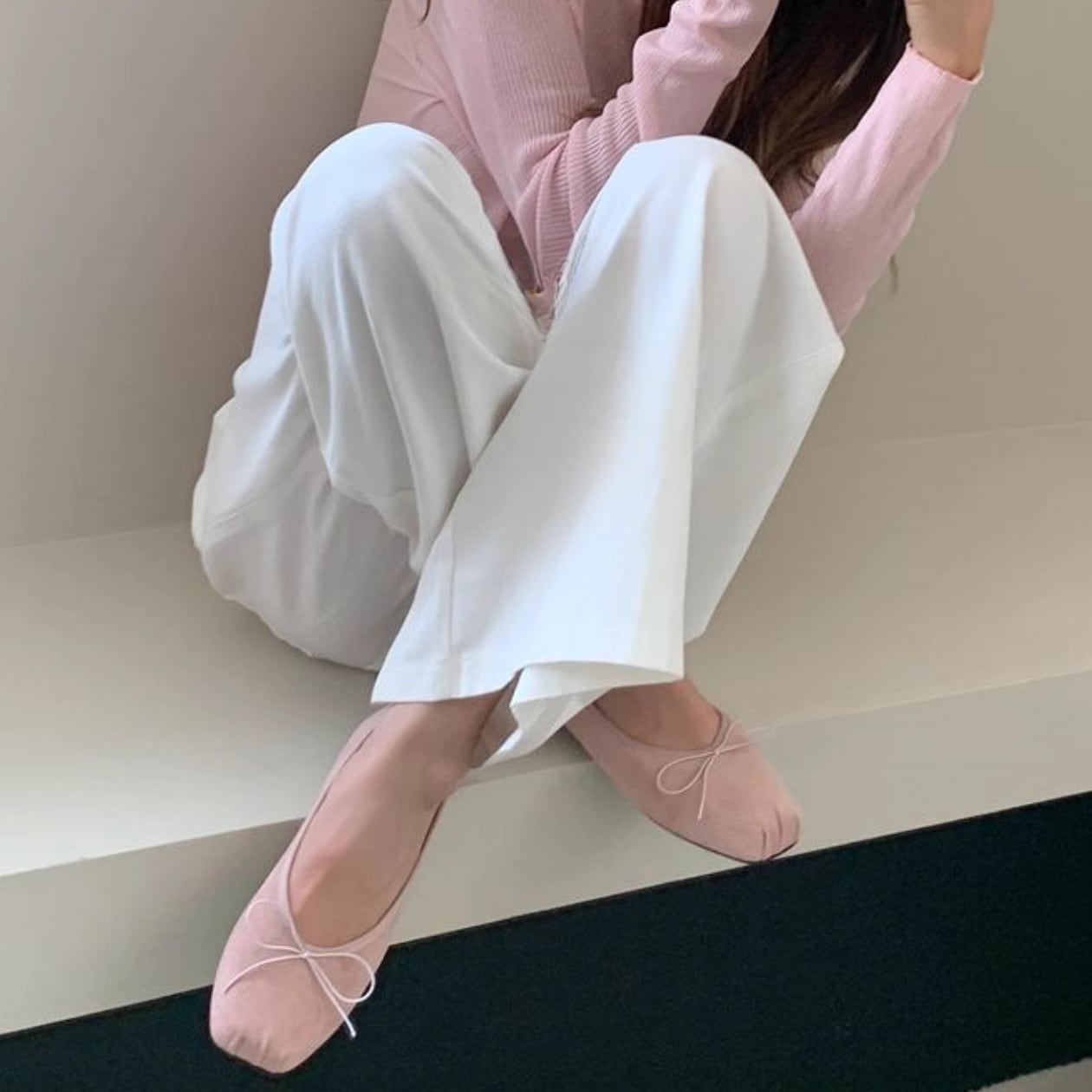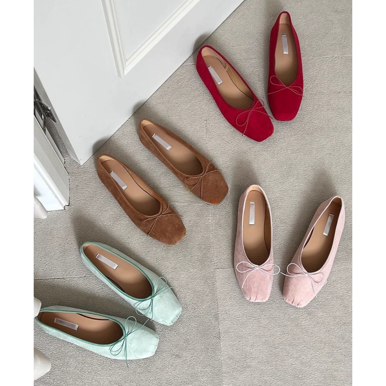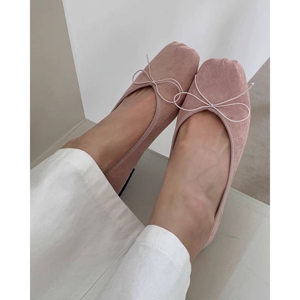 スクエアトゥとリボンが可愛いフラットシューズ♪