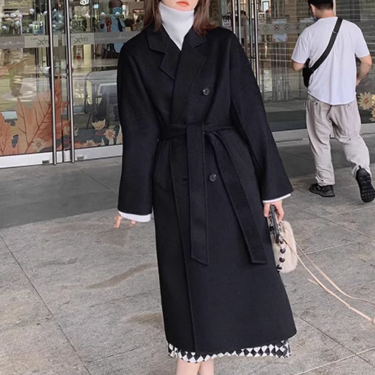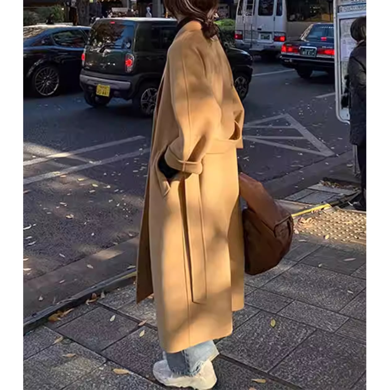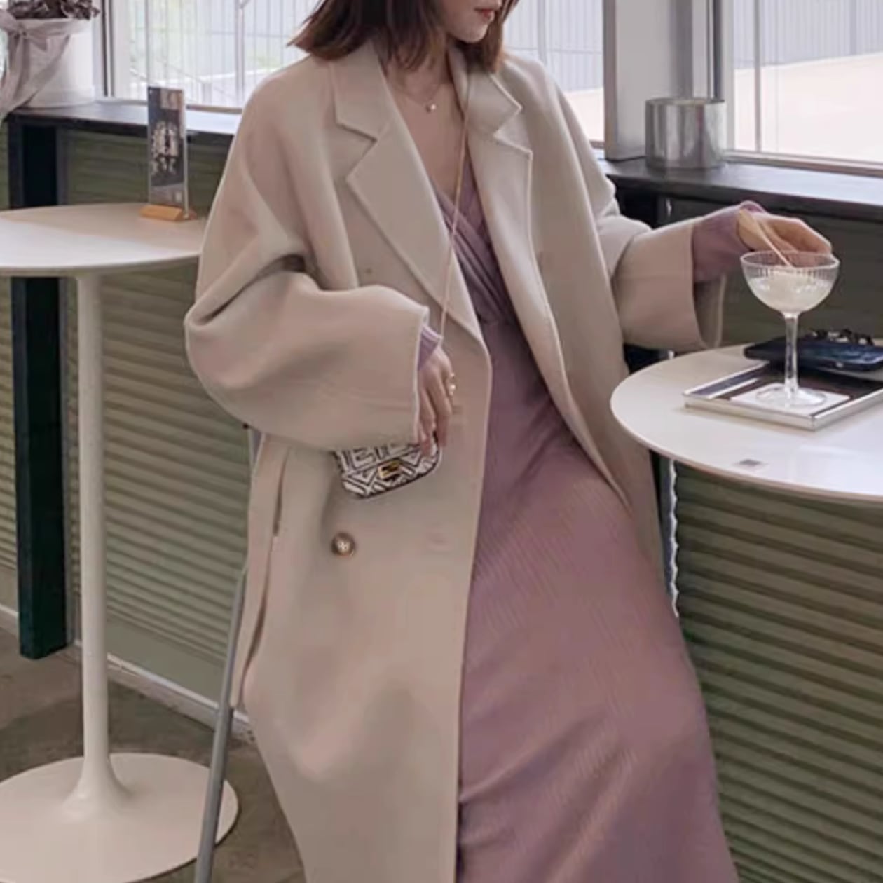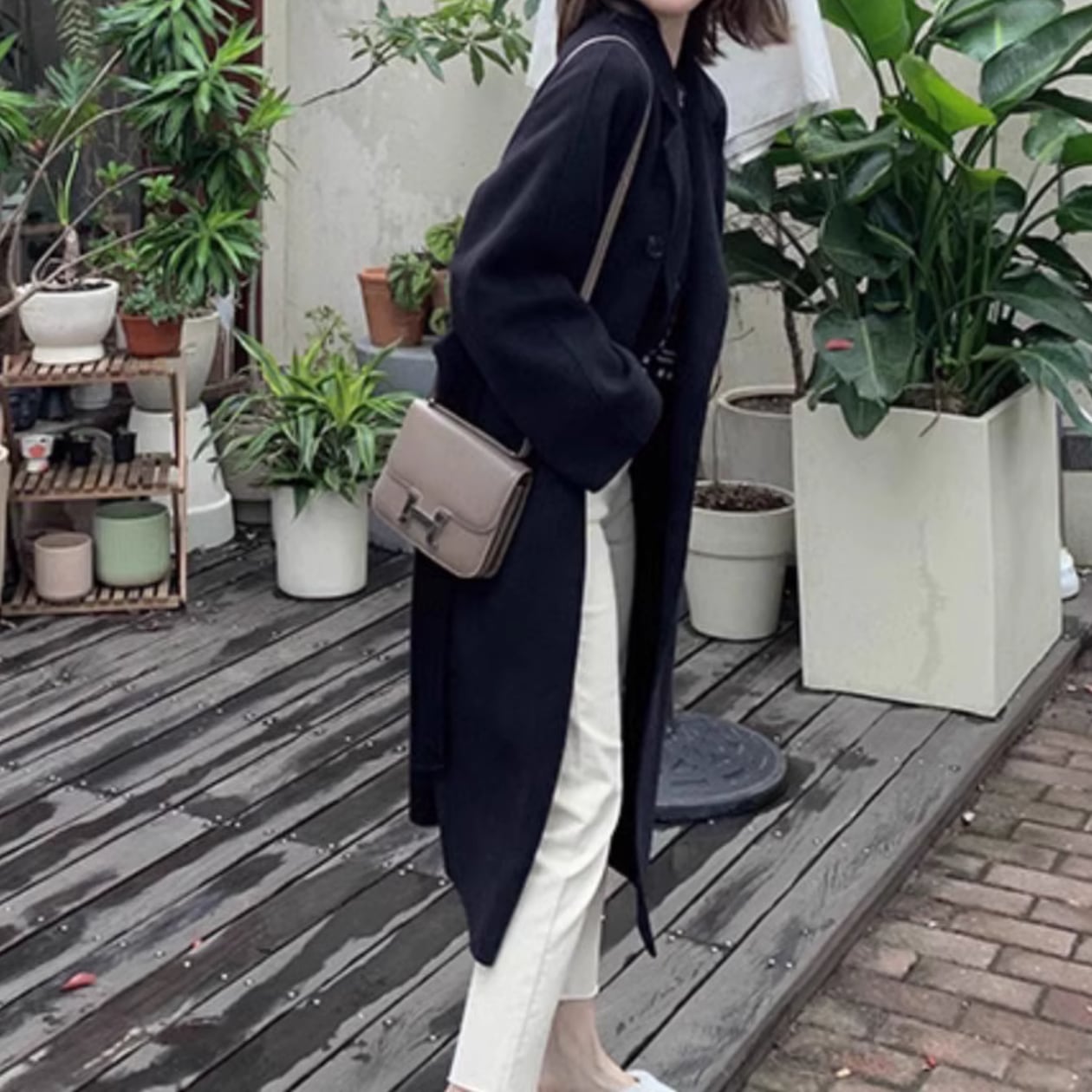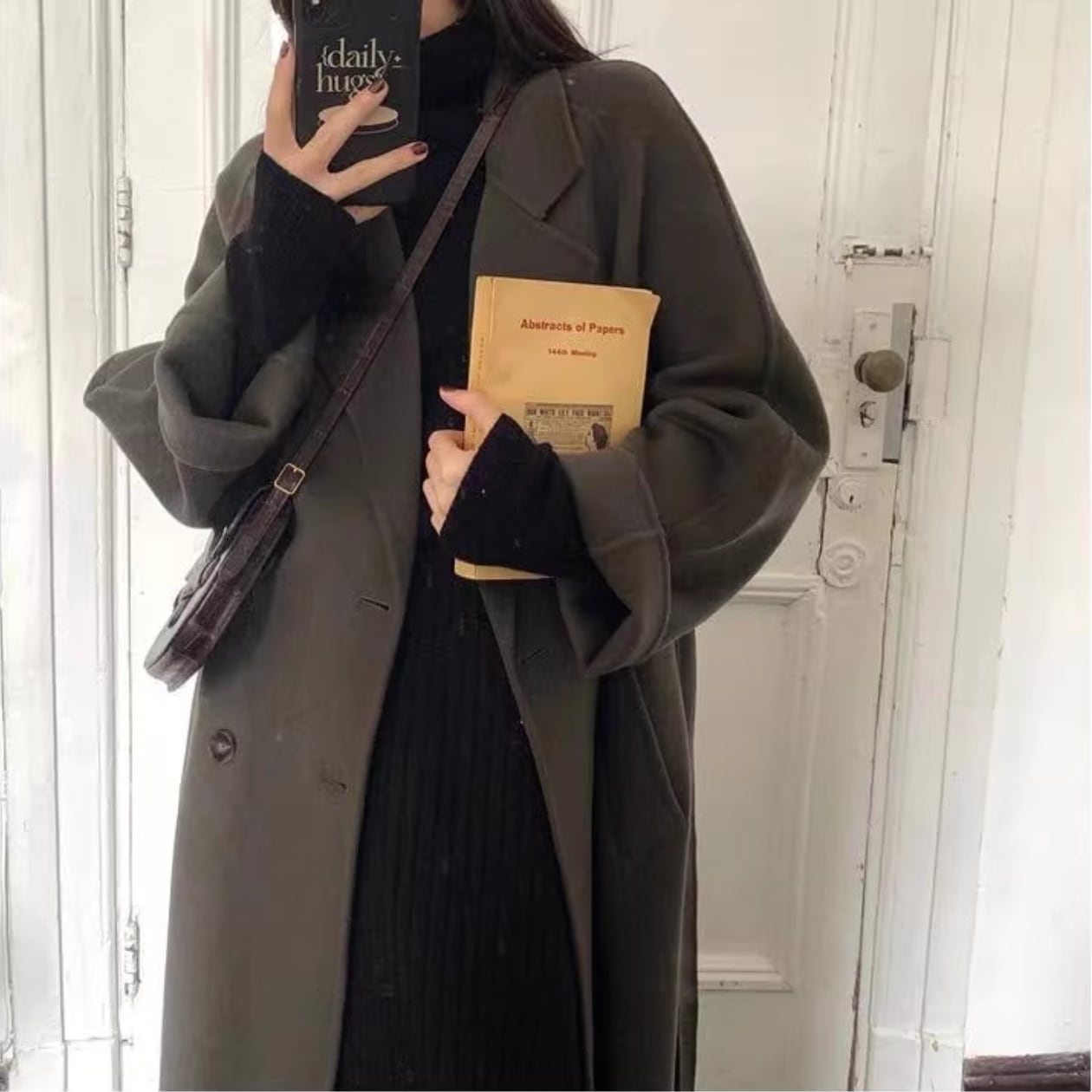 ロング丈のシルエットが洗練された印象を与えるオーバーサイズコート。