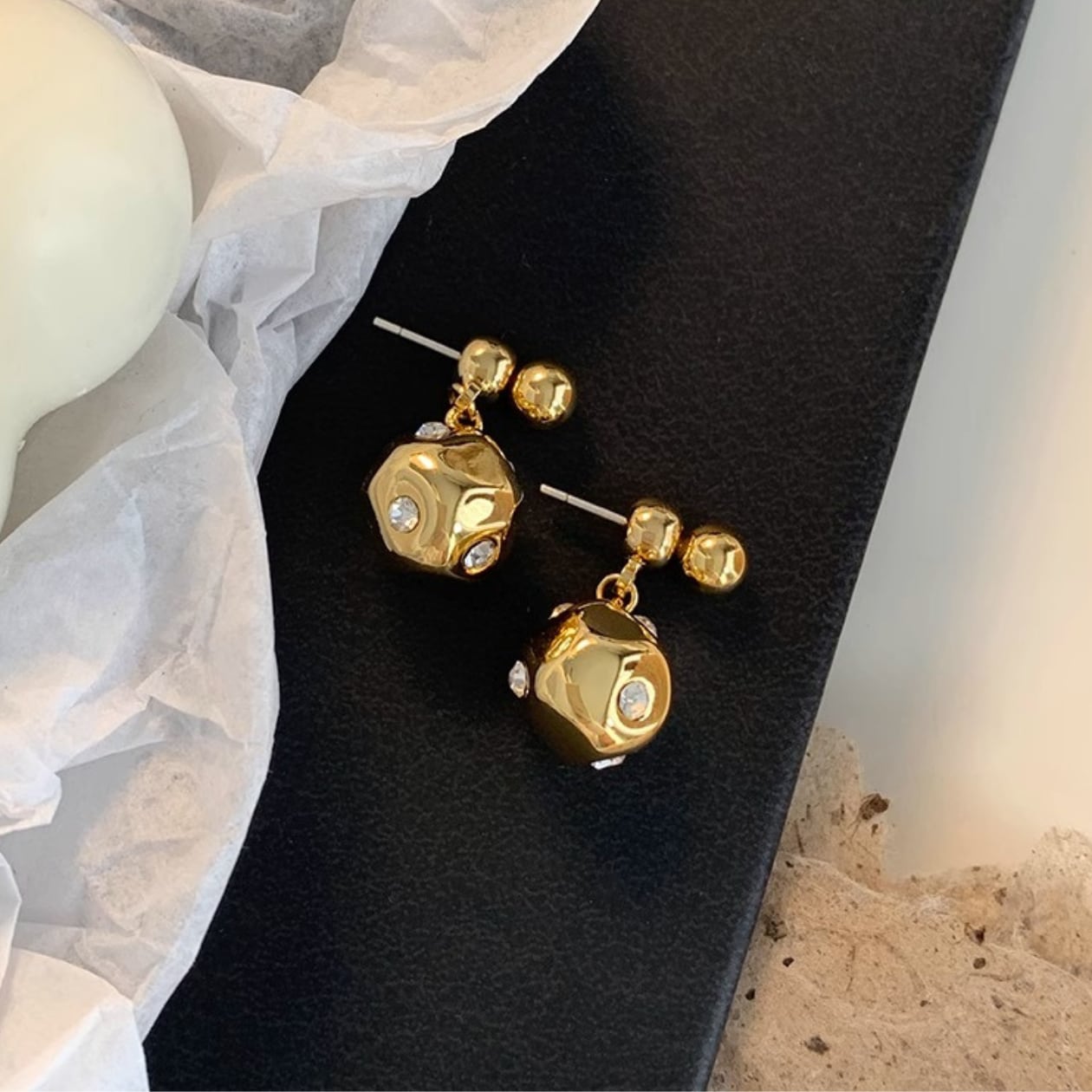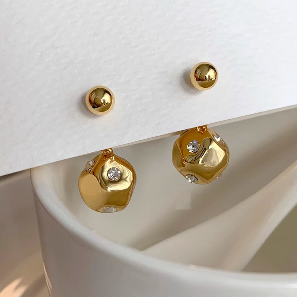 光を反射するボールデザインで、顔周りを明るく華やかに演出します。