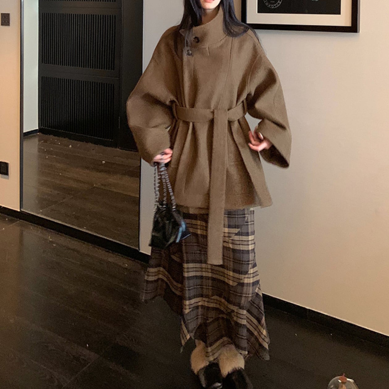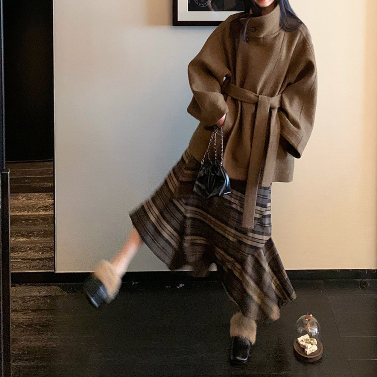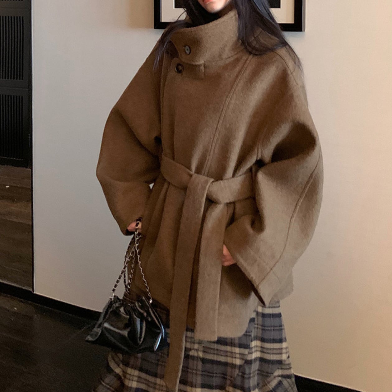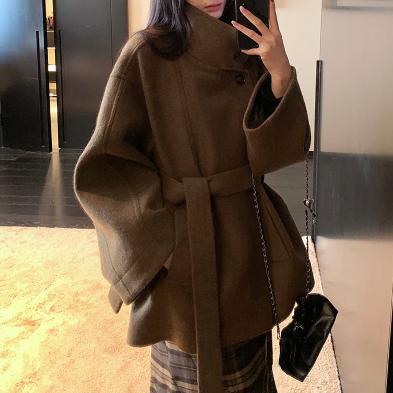 ベルト付きのヒップ丈ジャケットコートは、カジュアルにもきれいめにも着こなせる万能アイテムです。
