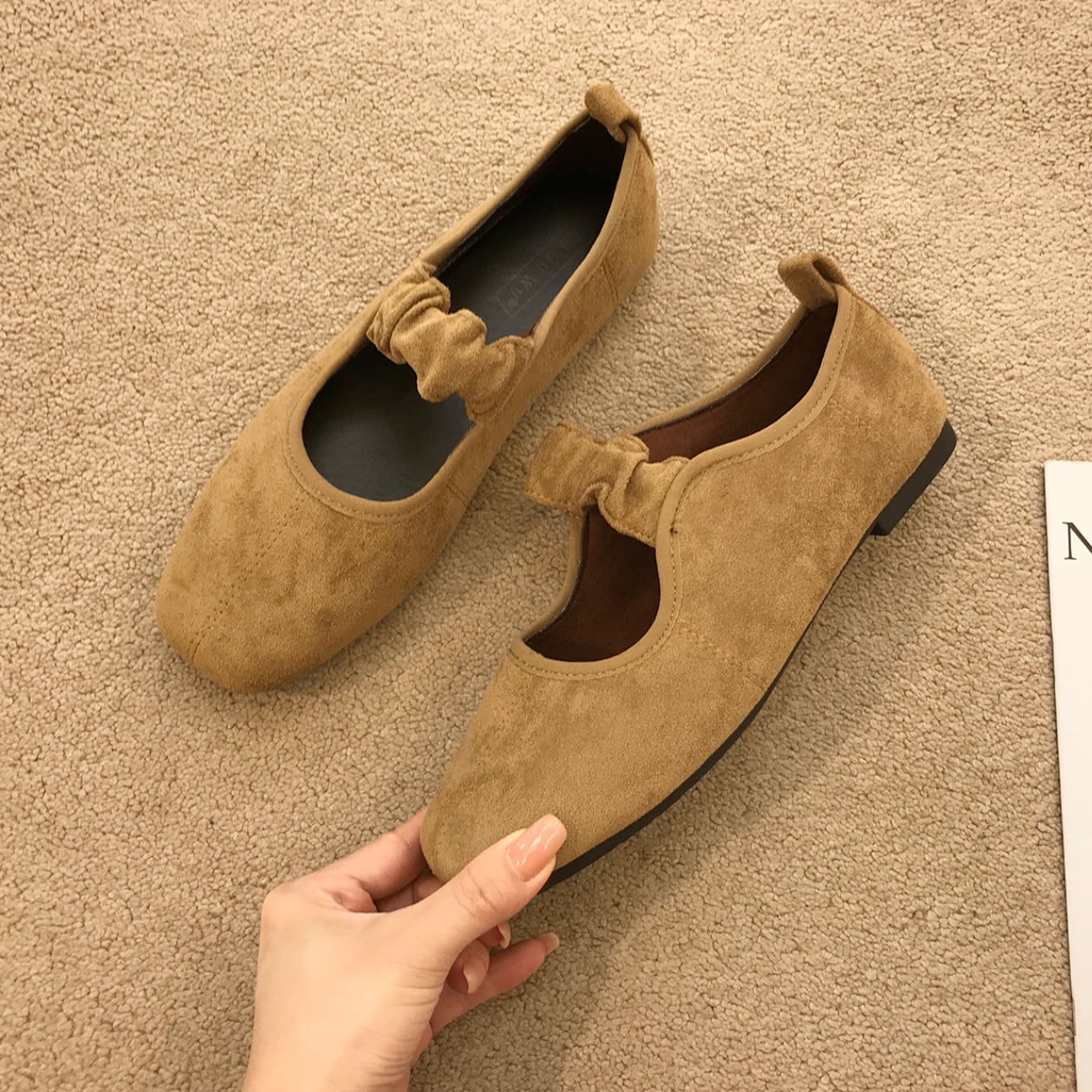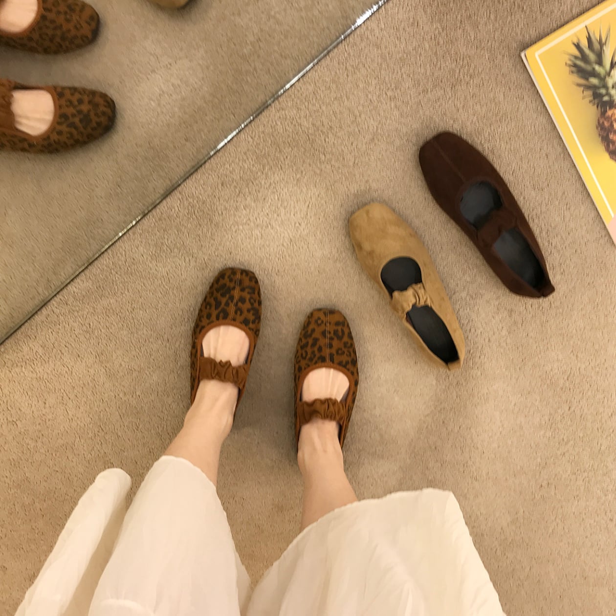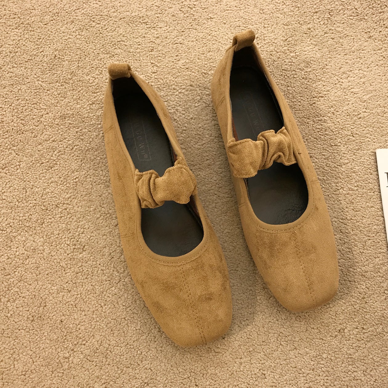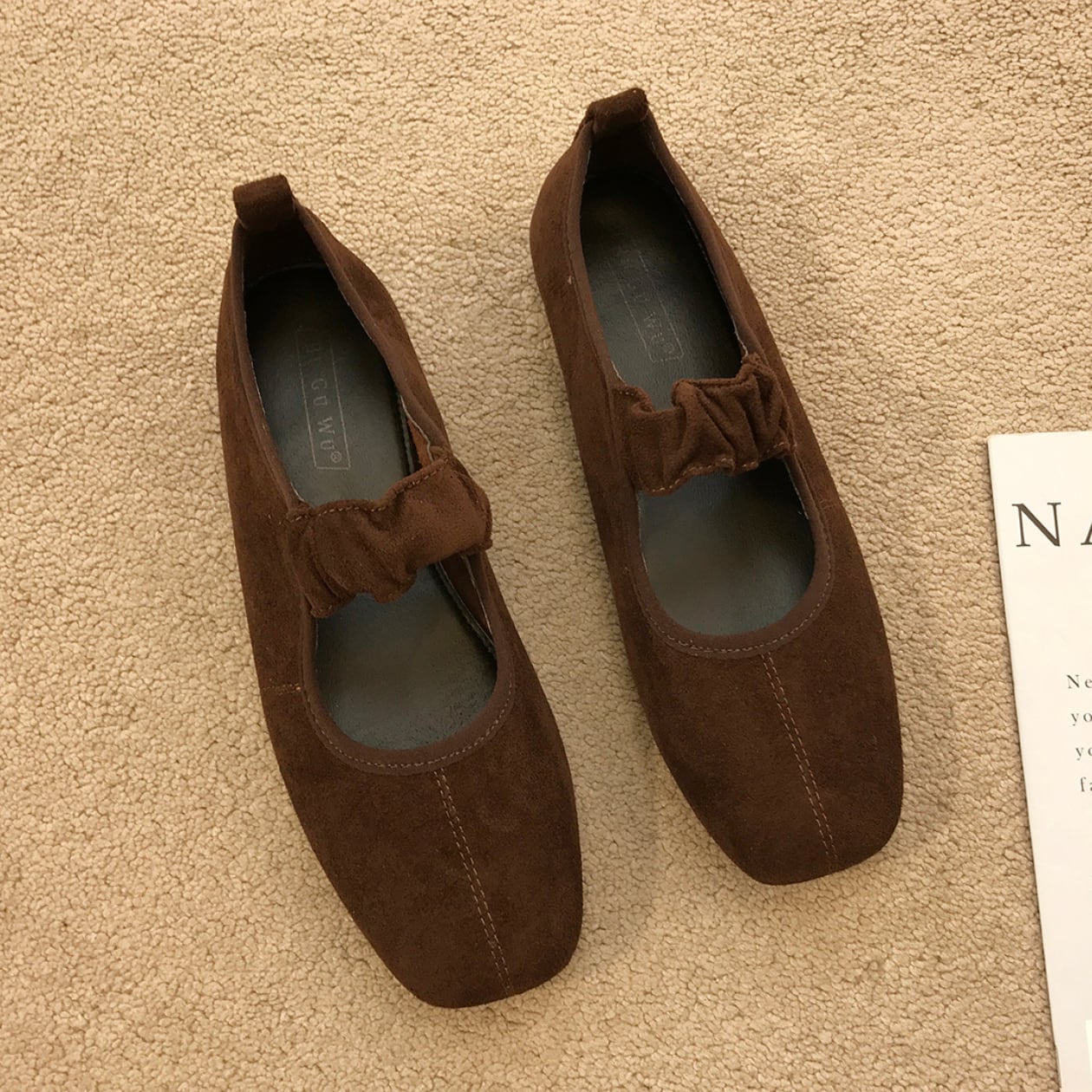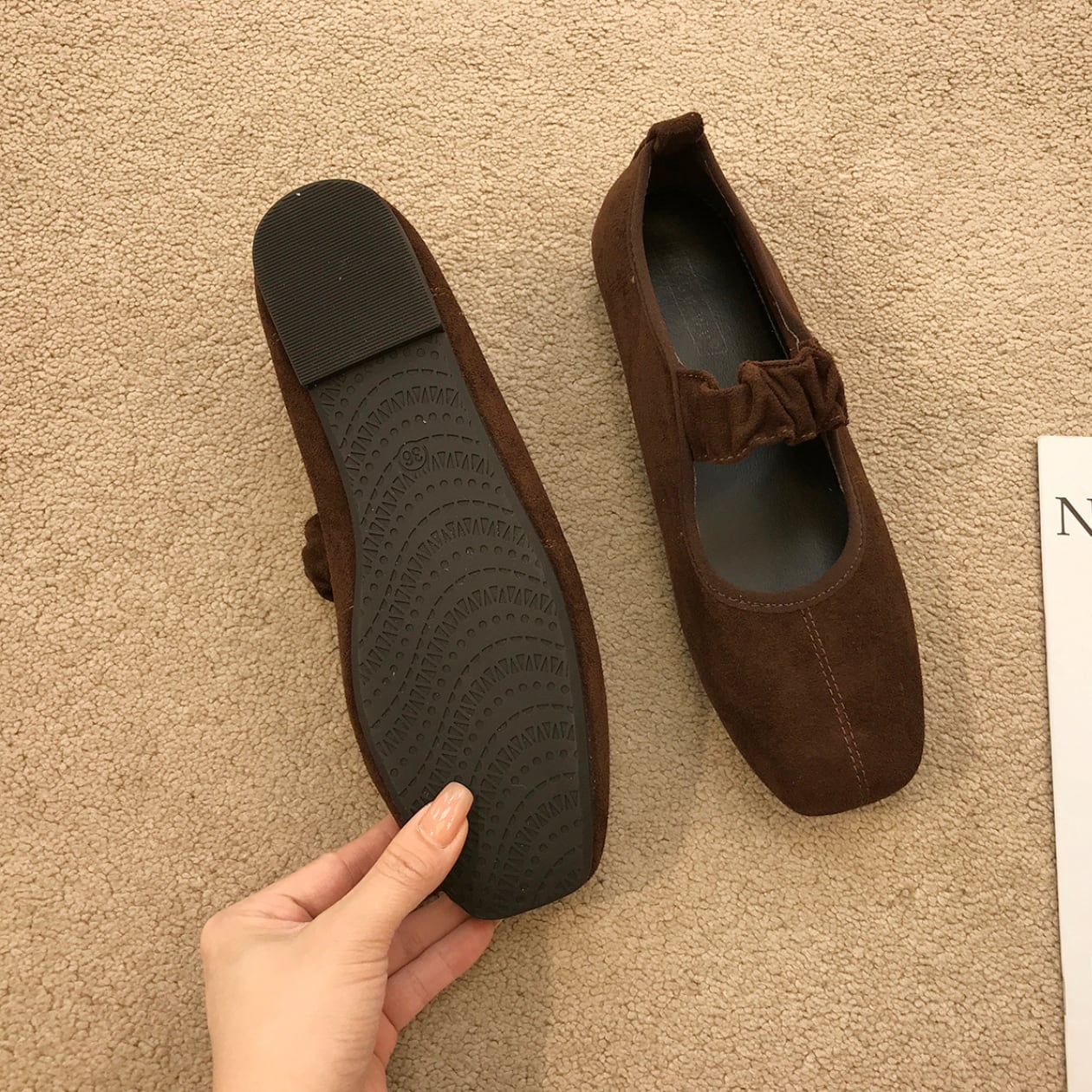 スクエアトゥのフラットシューズは、普段使いに最適な一足です。