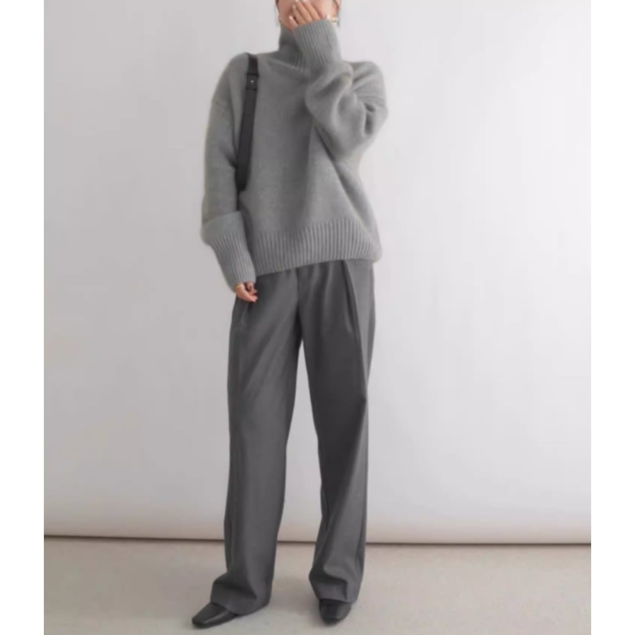 ドロップショルダーニットは、リラックスした雰囲気で着こなせるアイテムです。