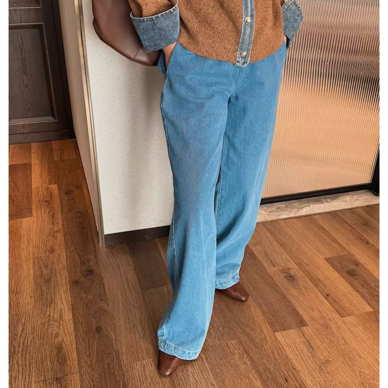 ワイドフレアシルエットが脚長効果を発揮し、スタイルアップを叶えます。