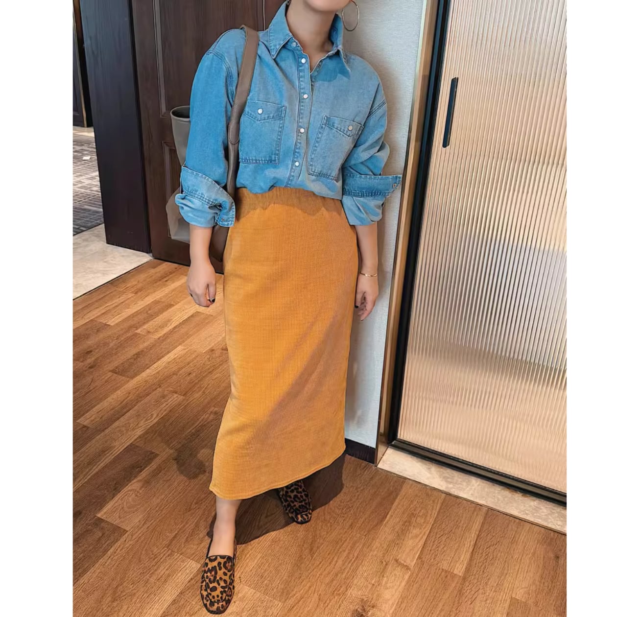 ストレートミモレ丈タイトスカートは、都会的で洗練された印象を与えてくれるアイテムです。