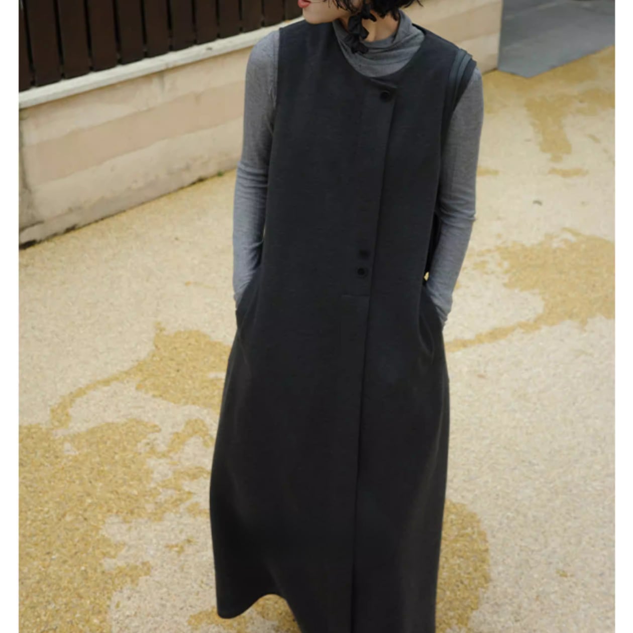 ボタンフロントのデザインが、シンプルな中にアクセントを加えています。サラッと一枚で着こなすのはもちろん、ジャケットやカーディガンを羽織って、雰囲気を変えるのもおすすめです。