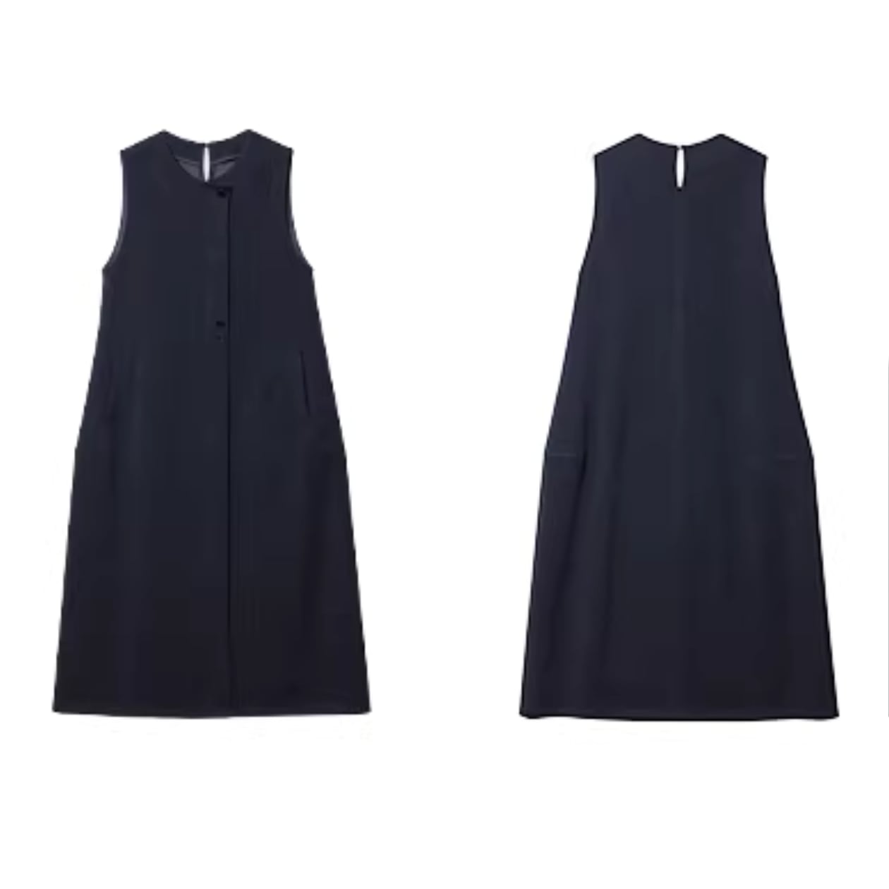 ノースリーブワンピースは、すっきりとしたシルエットで、上品な印象を与えます。