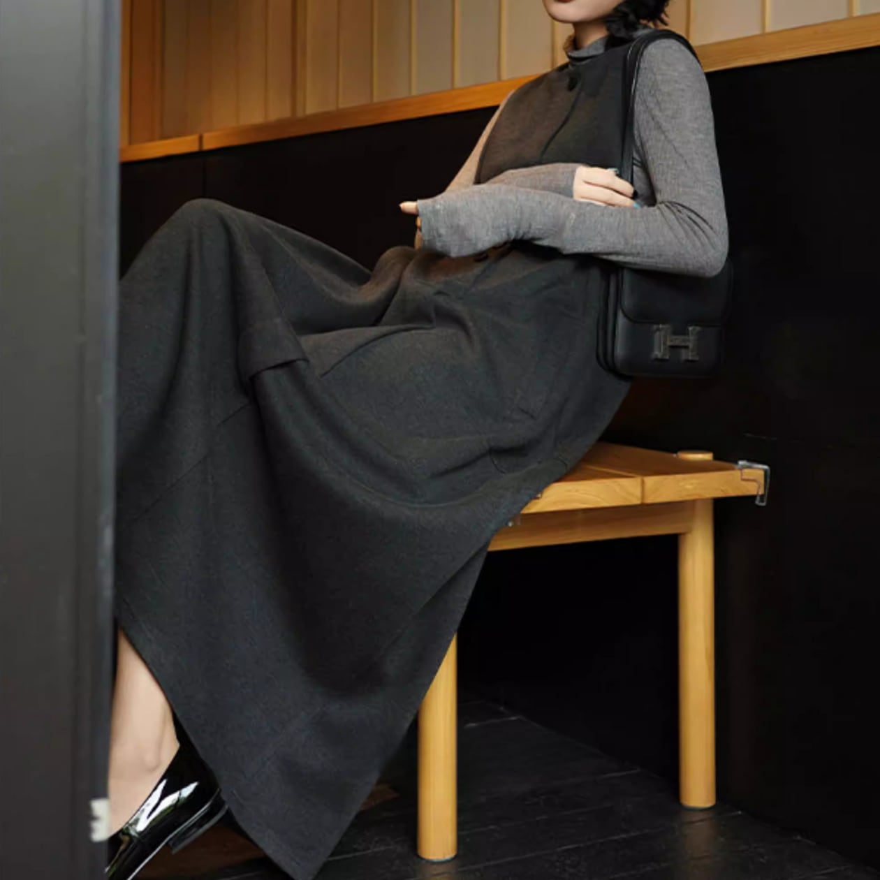 ミモレ丈なので、カジュアルな普段使いから、ちょっとしたお出かけまで、様々なシーンで活躍します。