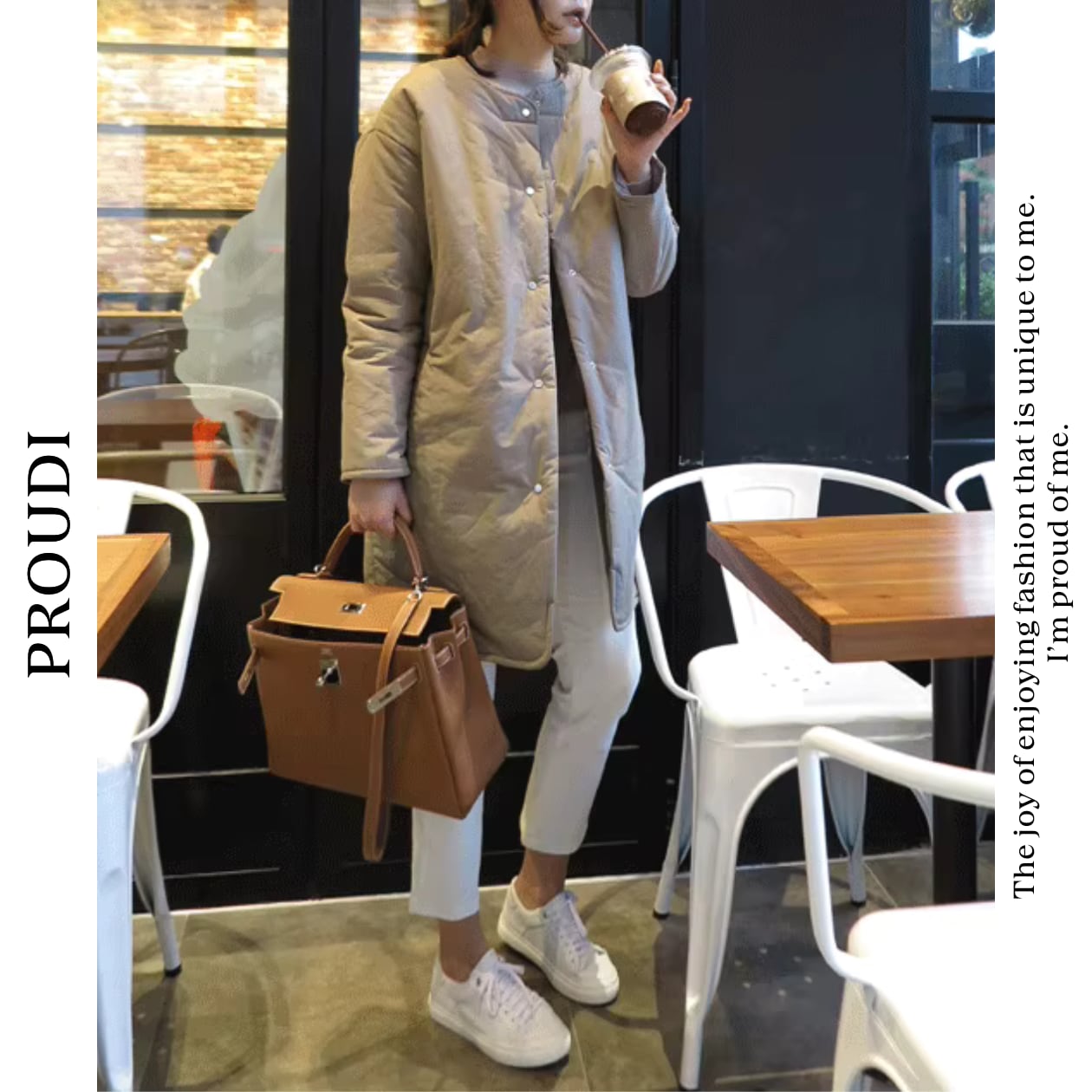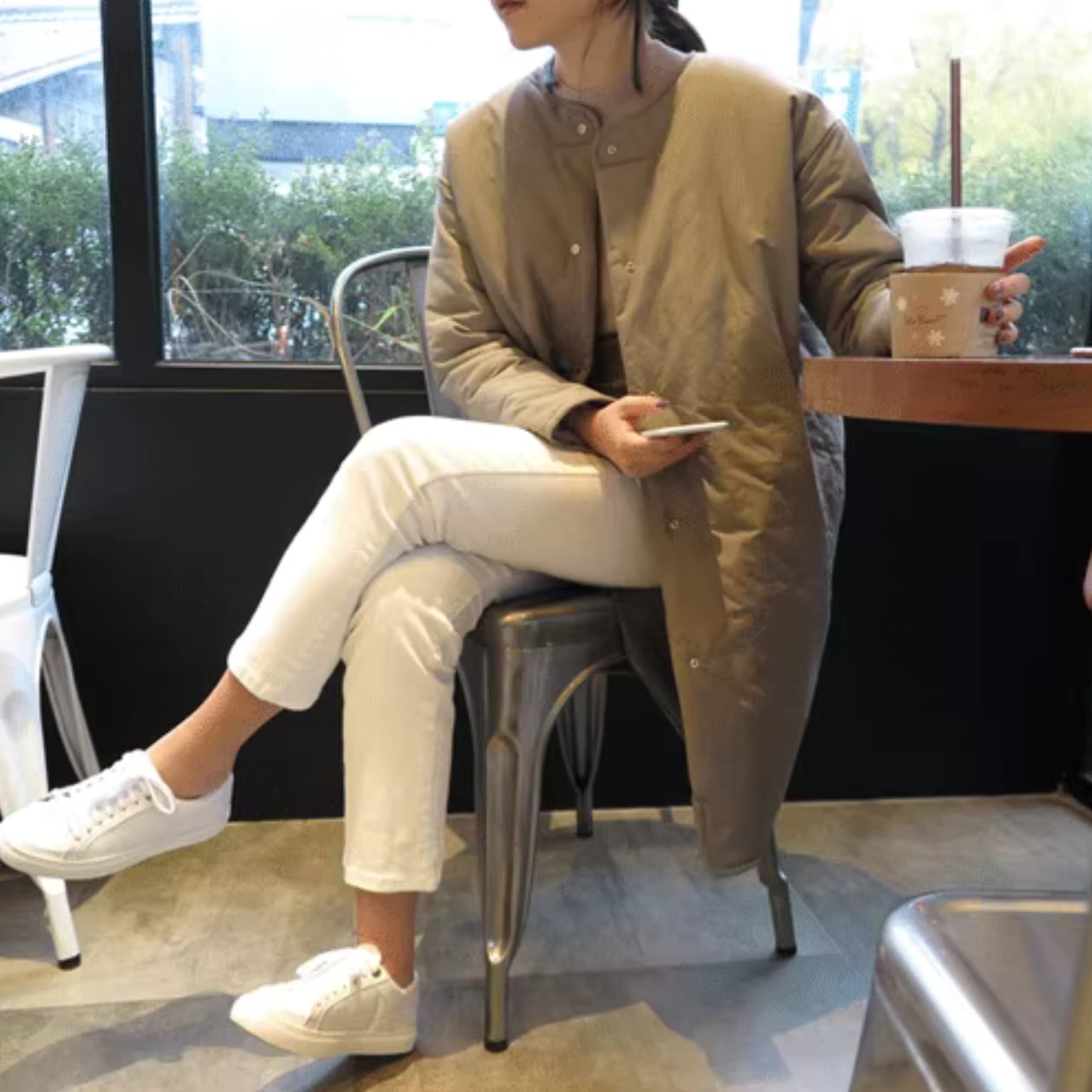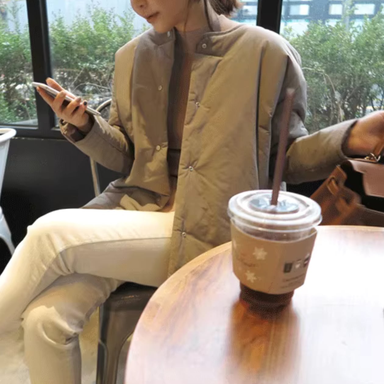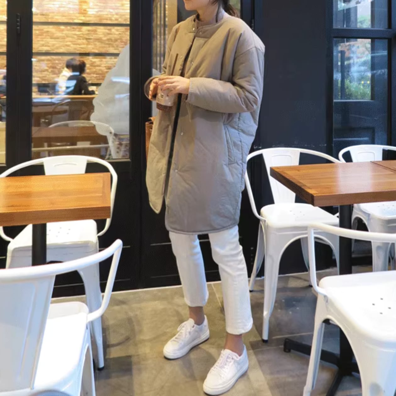 ノーカラーのデザインは、インナーを選ばず、普段使いしやすいアイテムです。