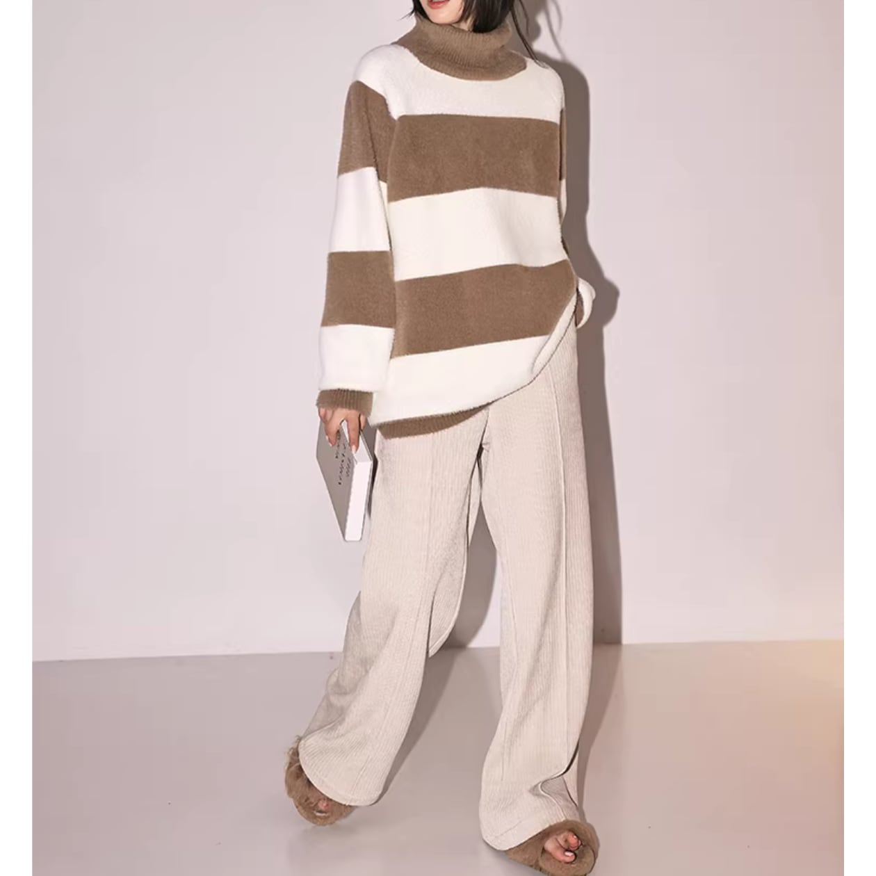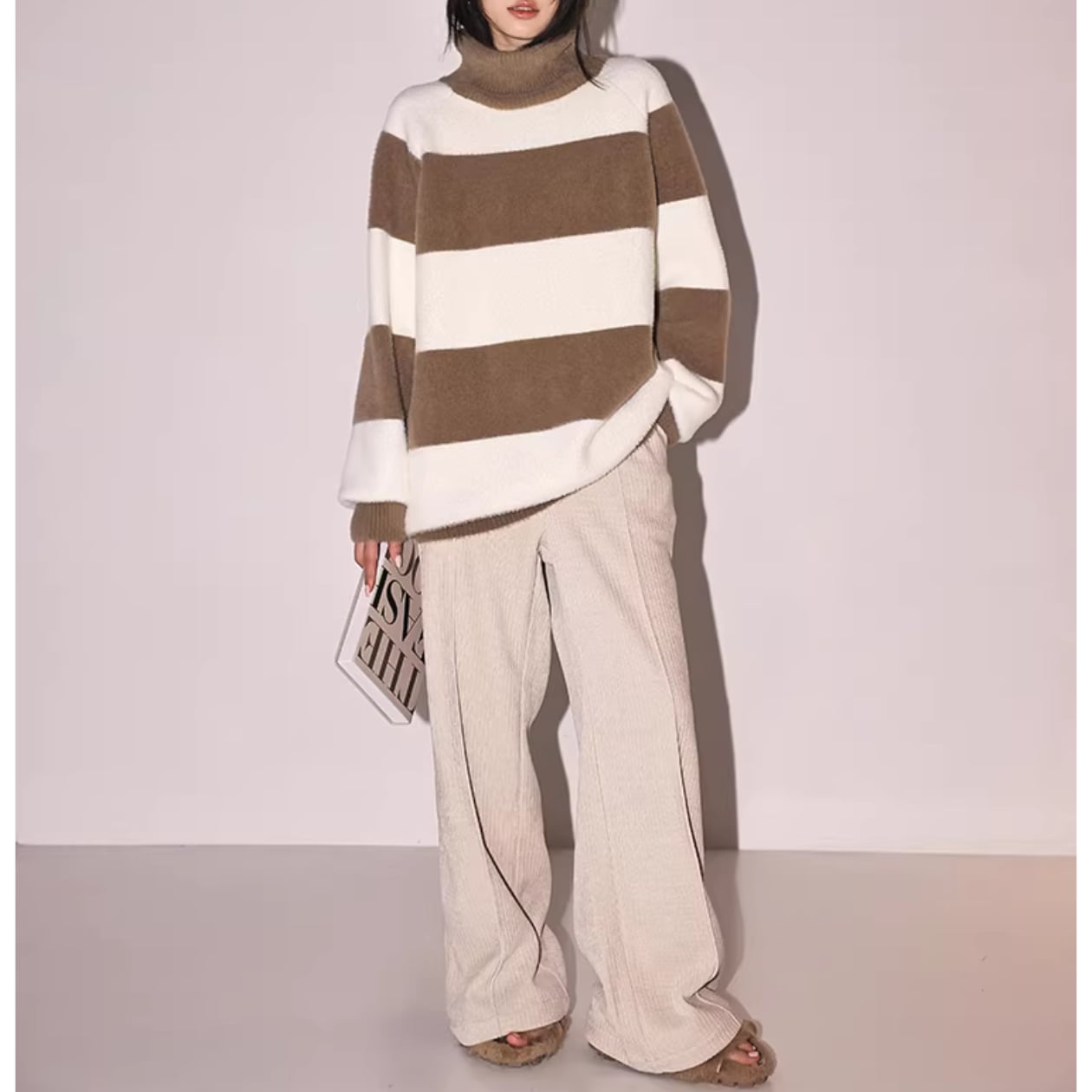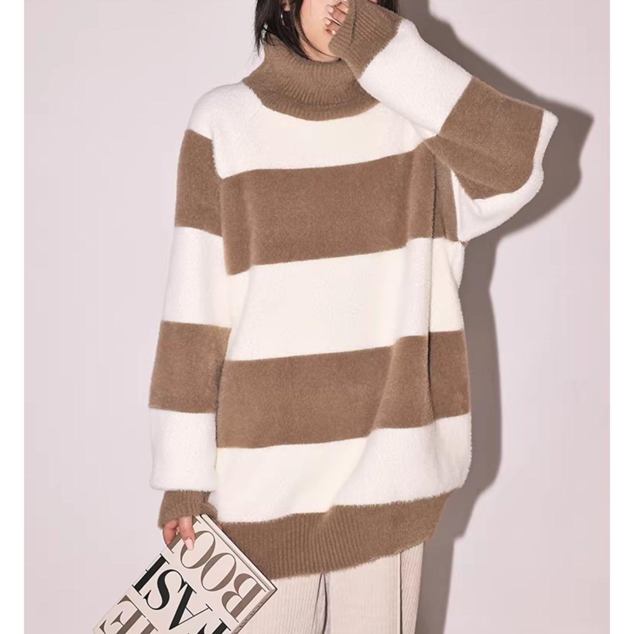 オーバーサイズなので、ゆったりと着こなせてリラックスした雰囲気を演出します。