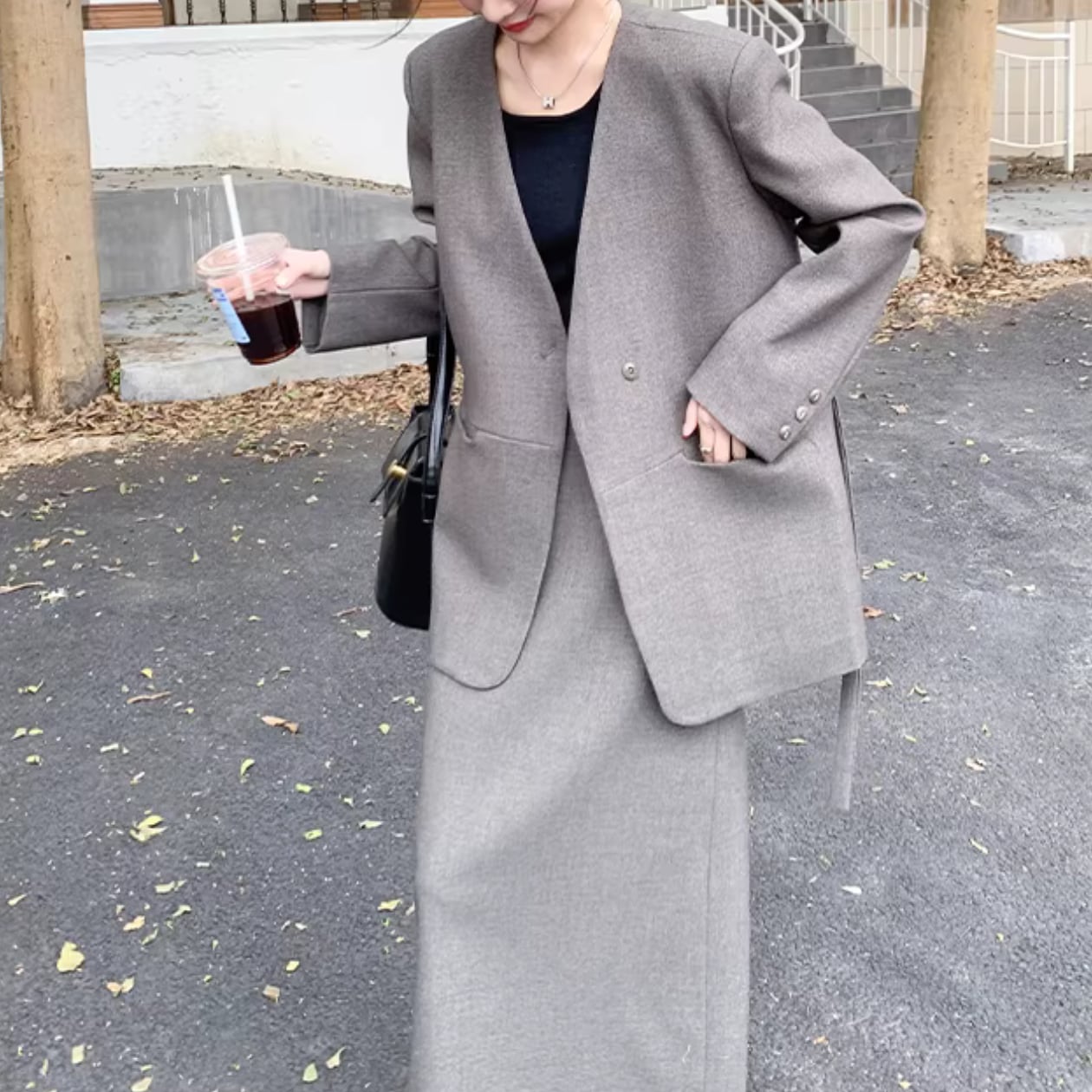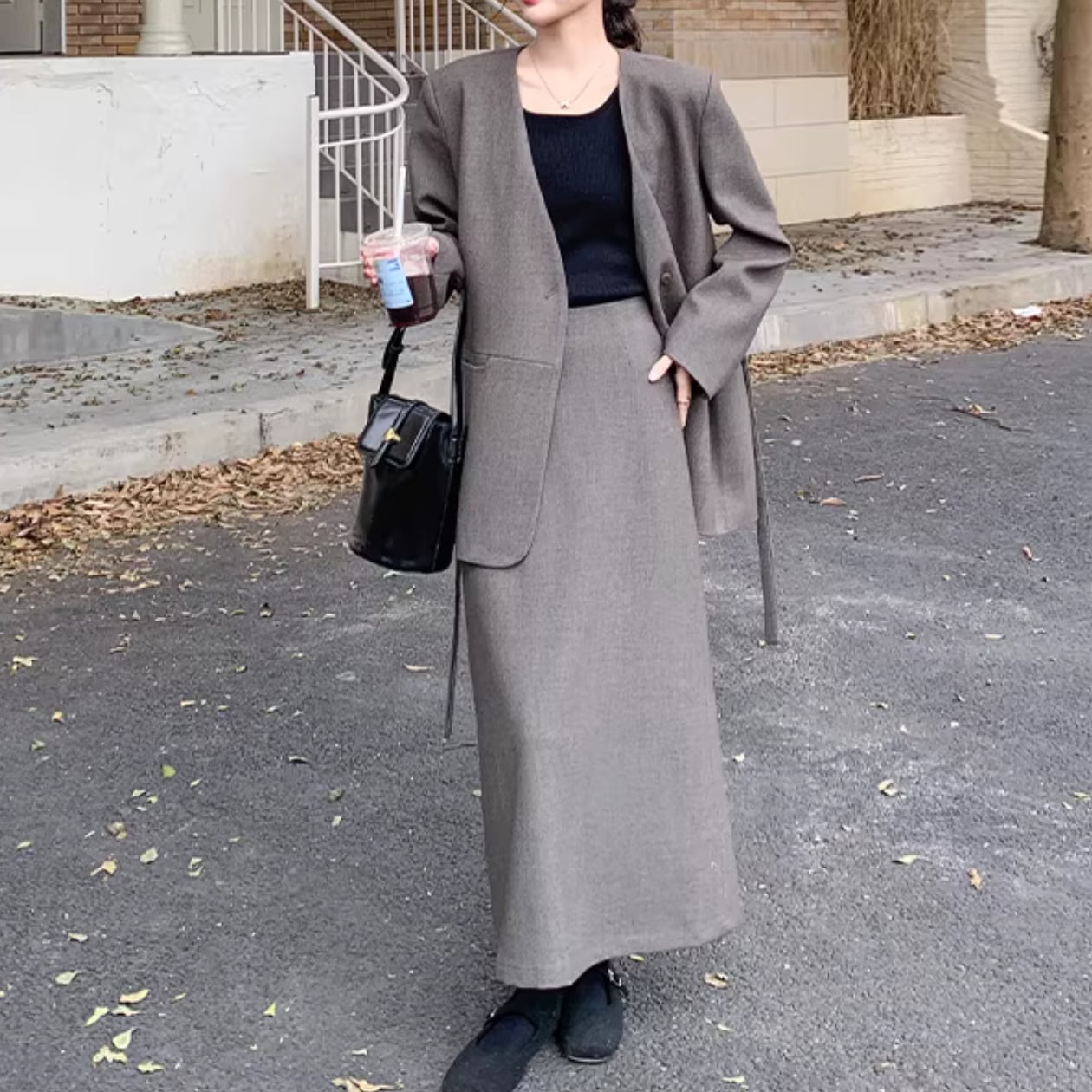 XL 肩幅:45cm 胸囲:114cm ウエスト:76cm ジャケット着丈:76cm 袖丈:61cm スカート丈:89cm