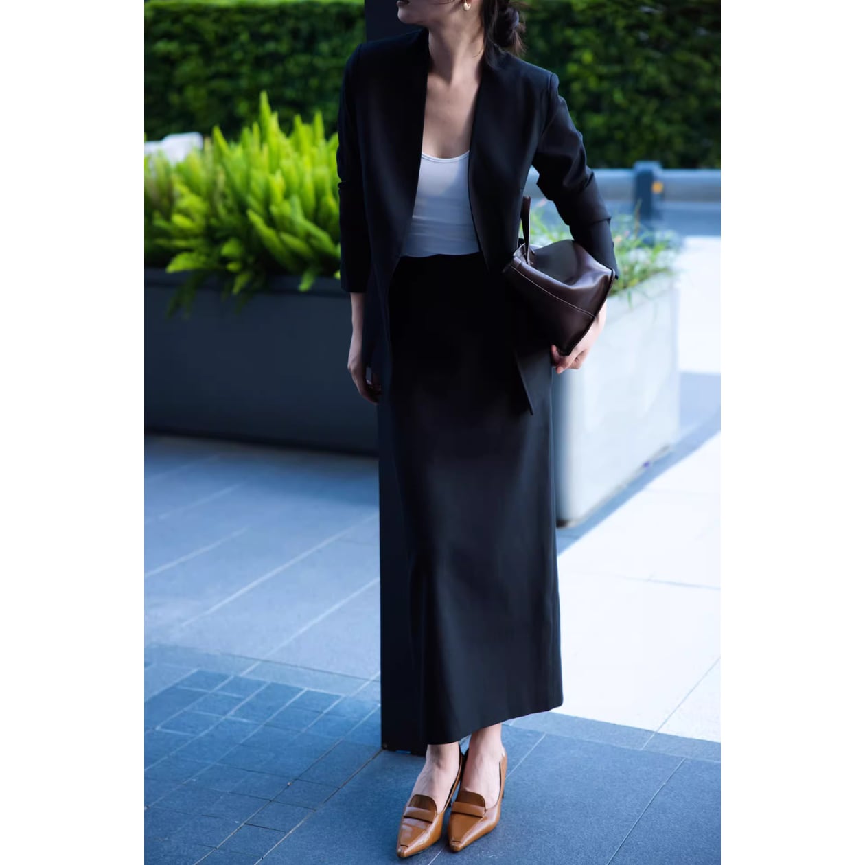 シングルブレストのジャケットは、オフィスシーンにもカジュアルにも着回せる万能アイテム。