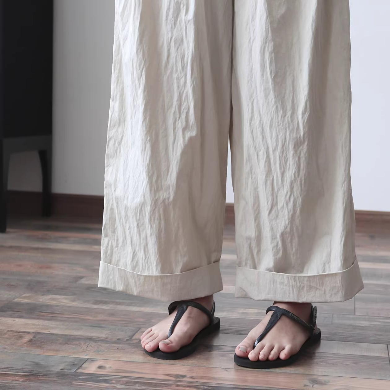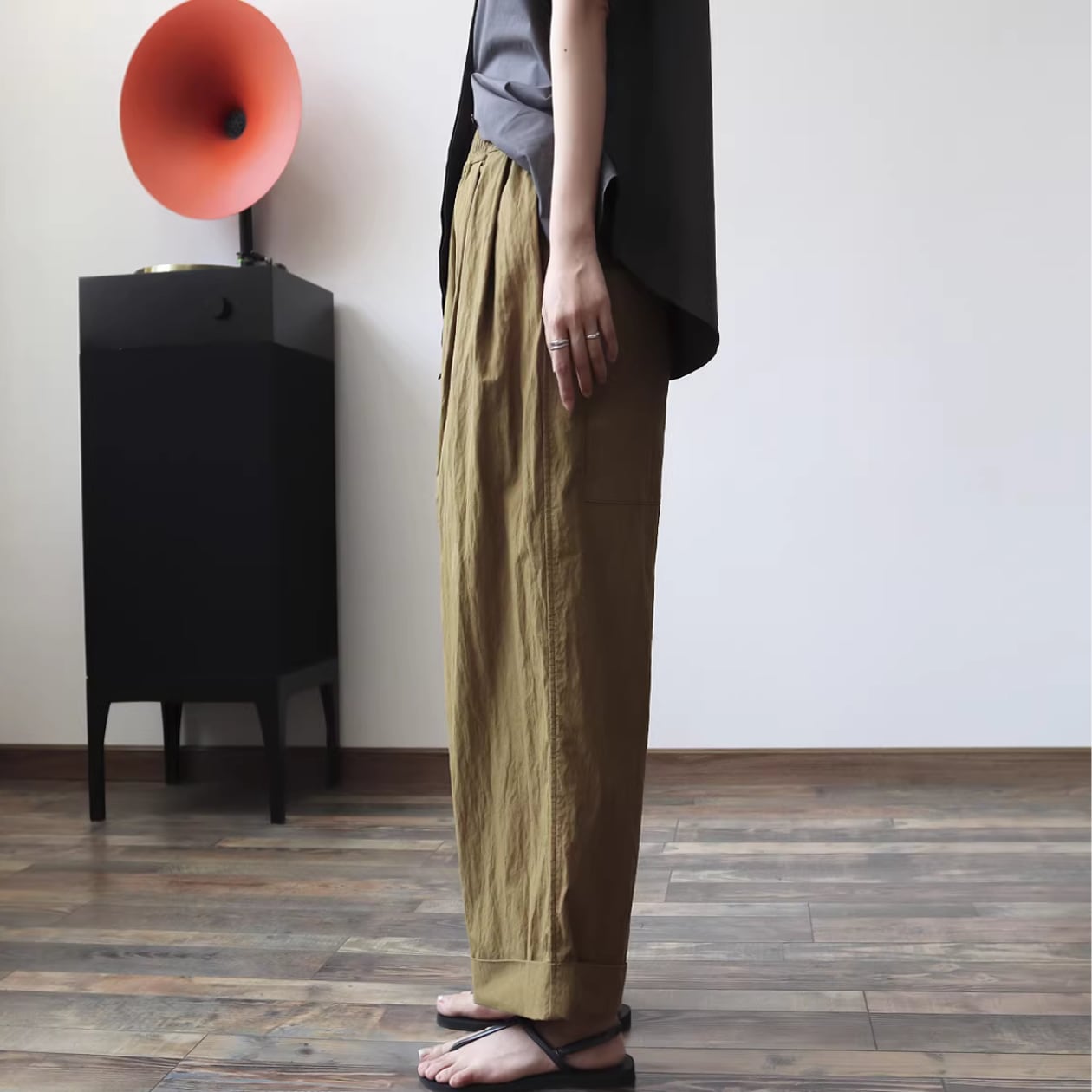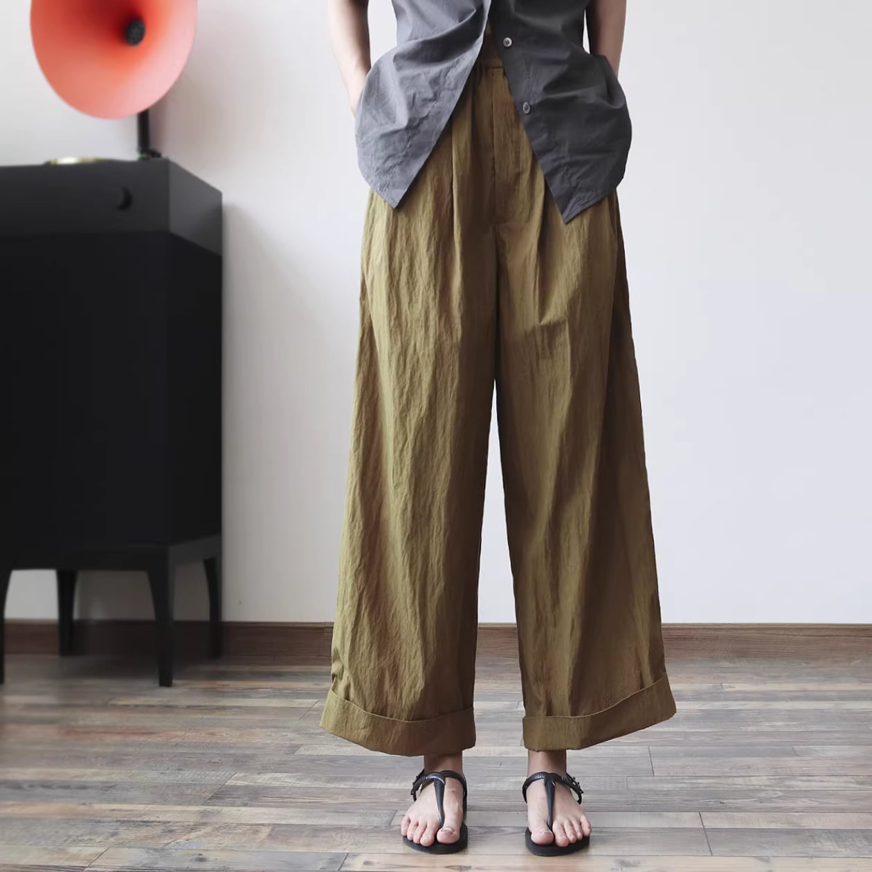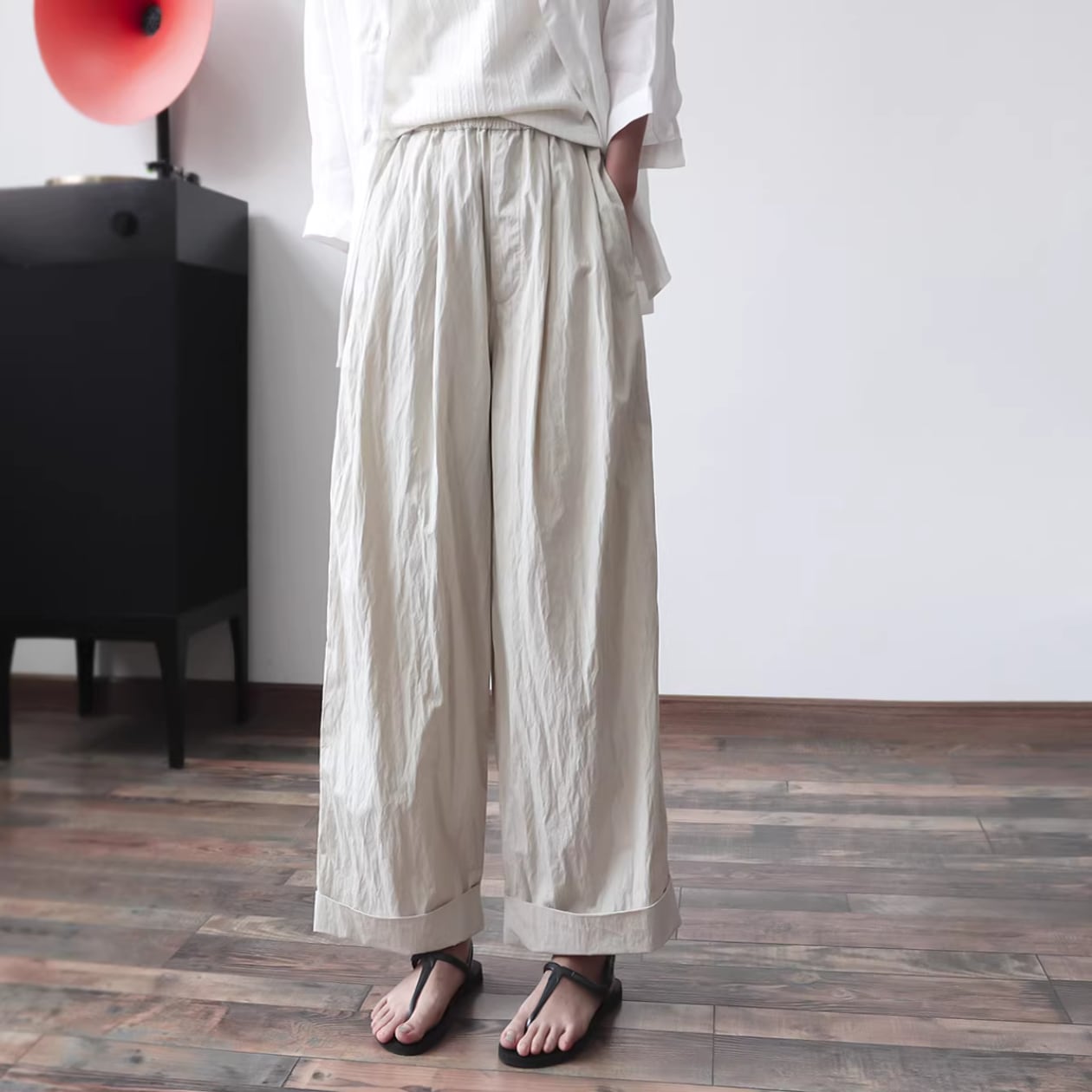 ロールアップした裾が特徴的なワイドクロップドパンツは、普段の着こなしにこなれ感をプラスします。