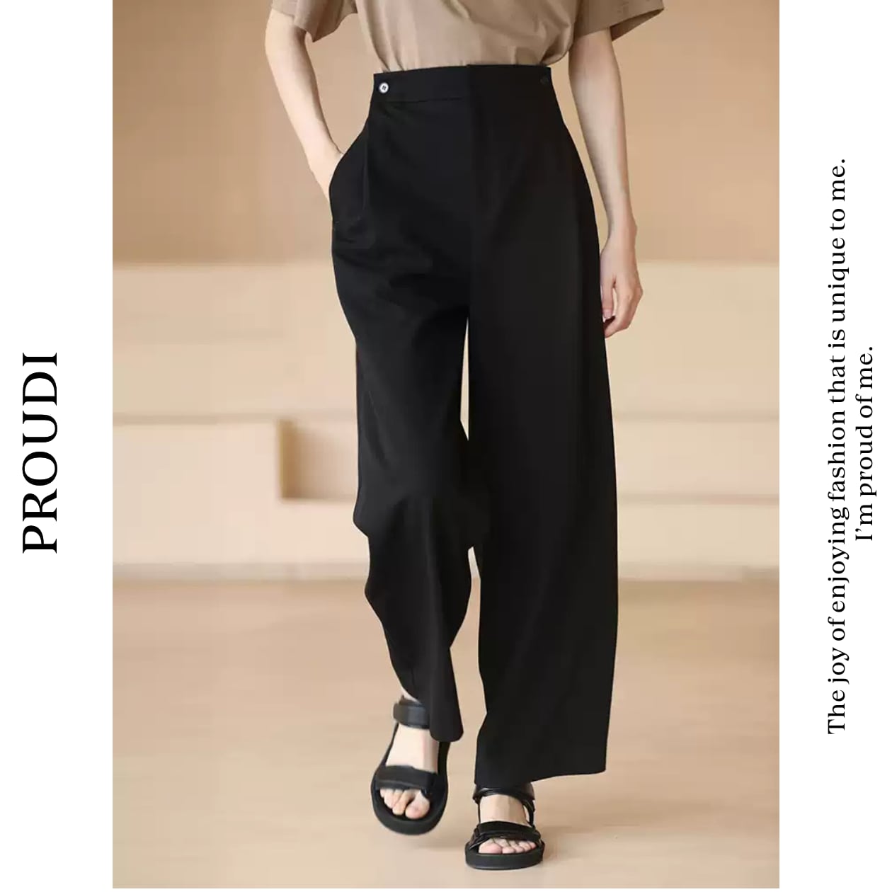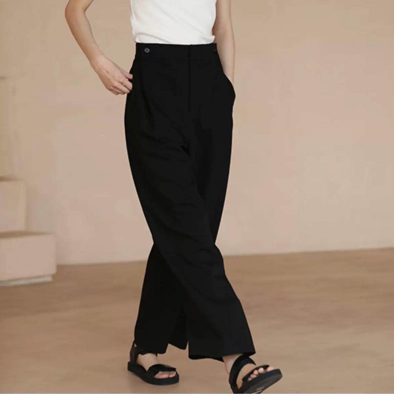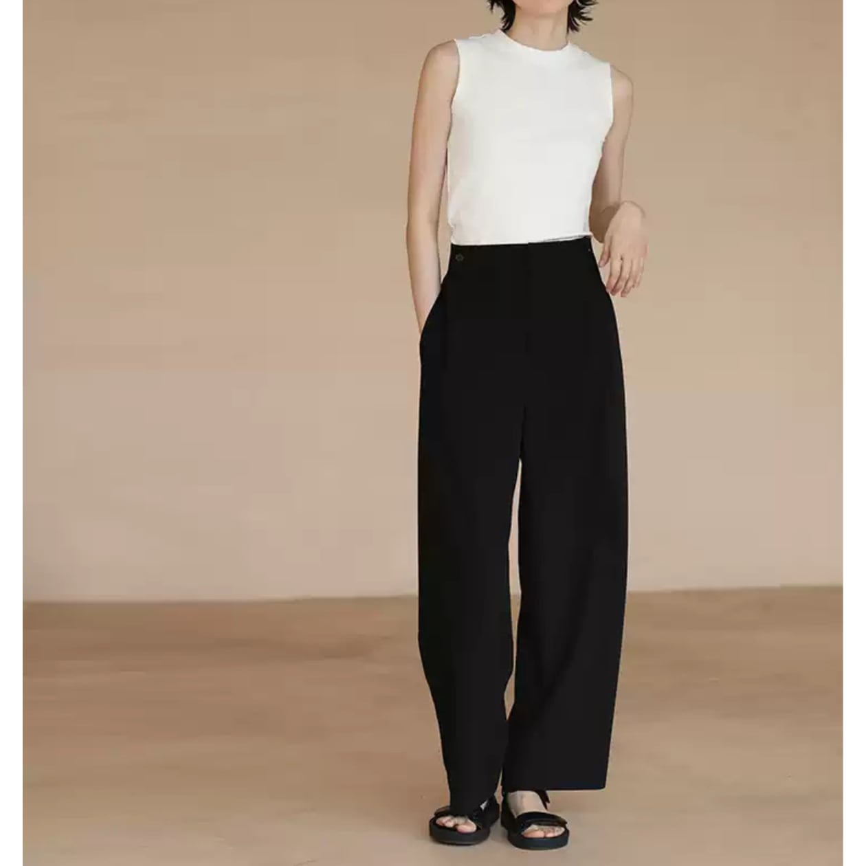 フルレングスのワイドシルエットが、ゆったりとしながらも洗練された印象を演出します。
