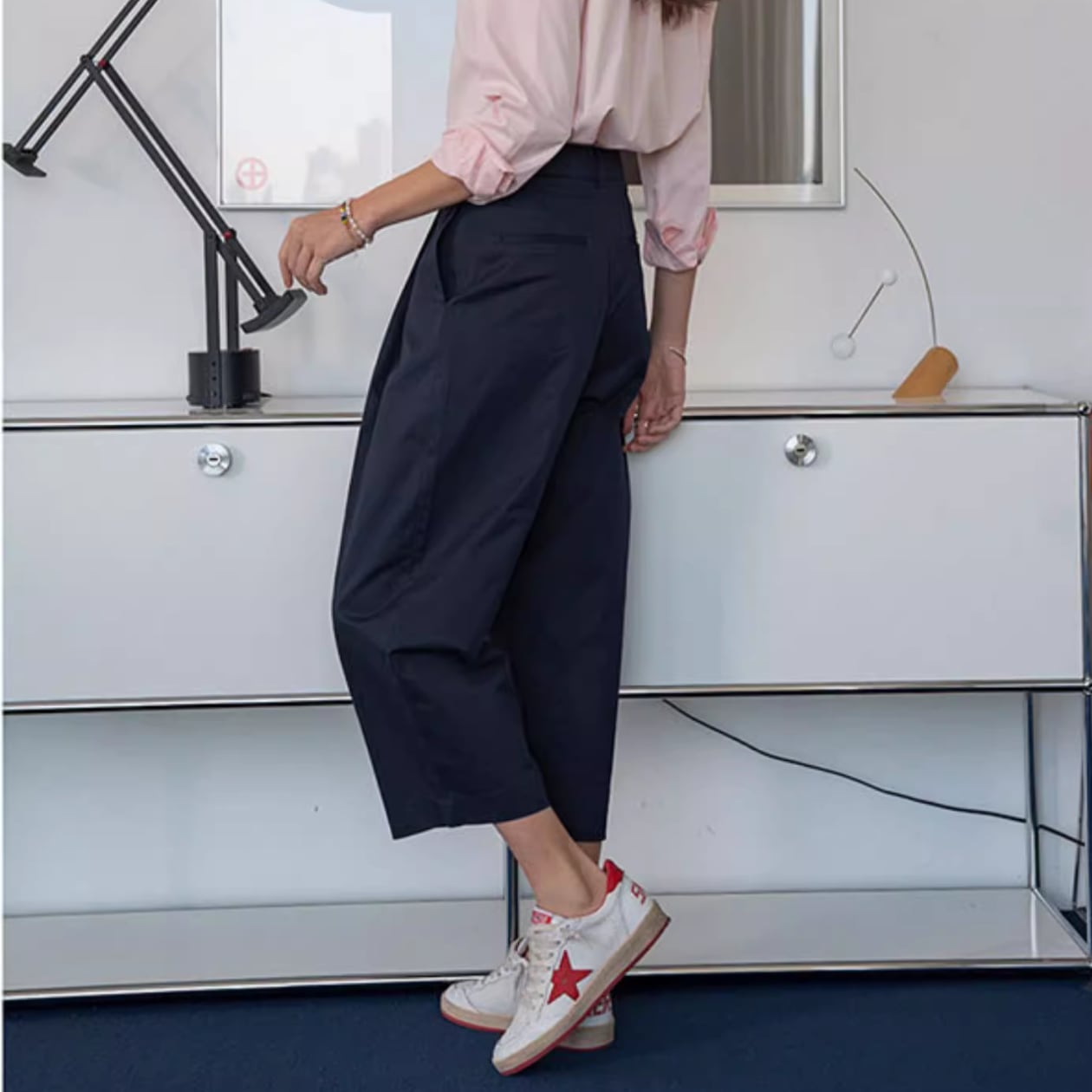 クロップド丈なので、足首を見せて軽やかさをプラス。