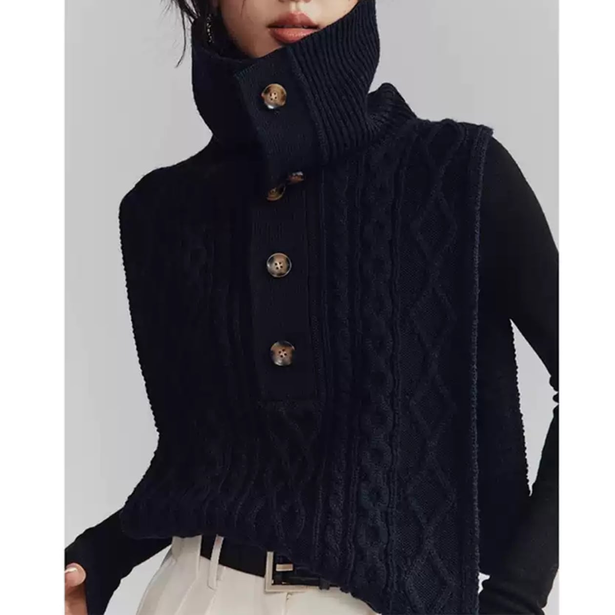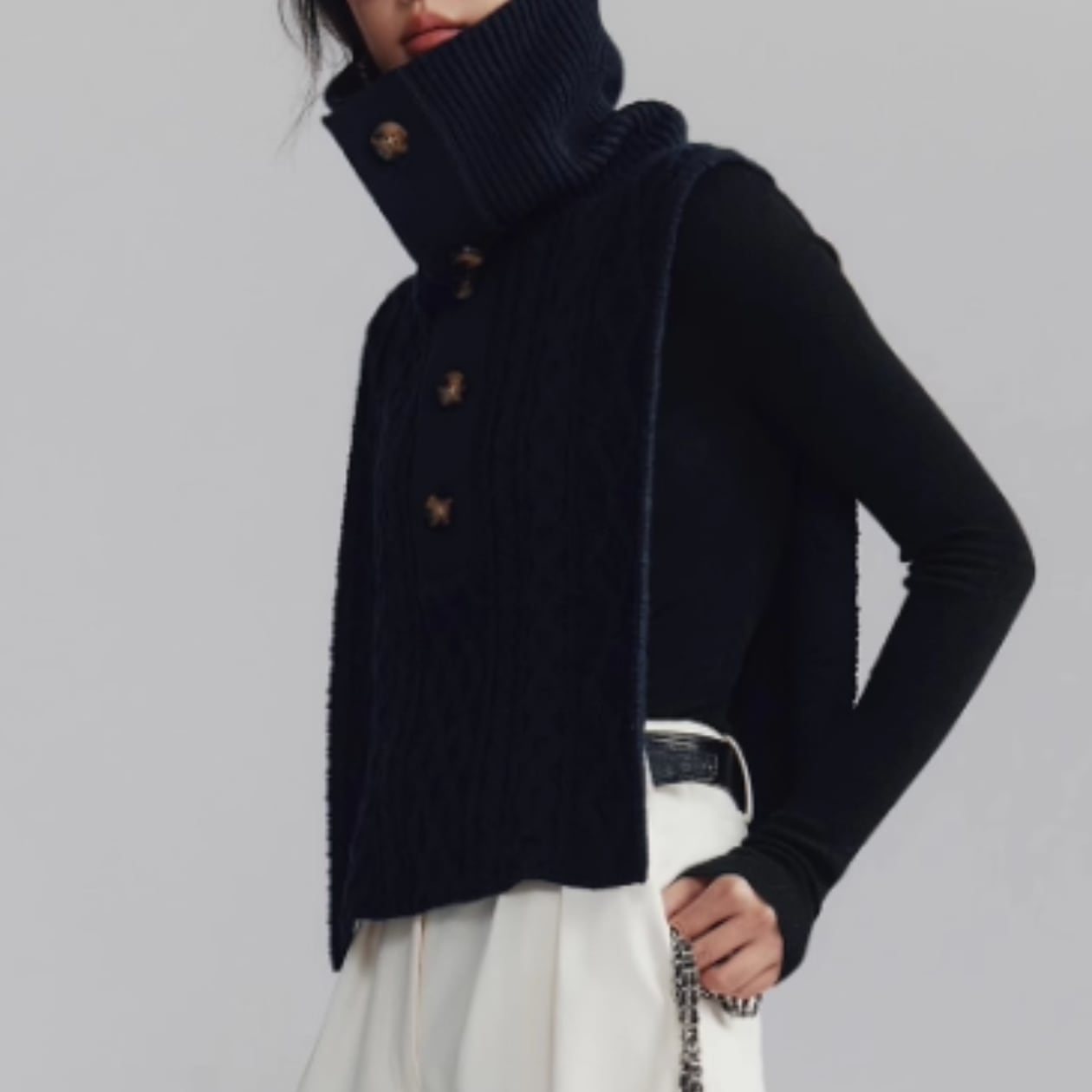ハイネックケーブルニットベストは、一枚で着てもサマになるおしゃれアイテム☆
