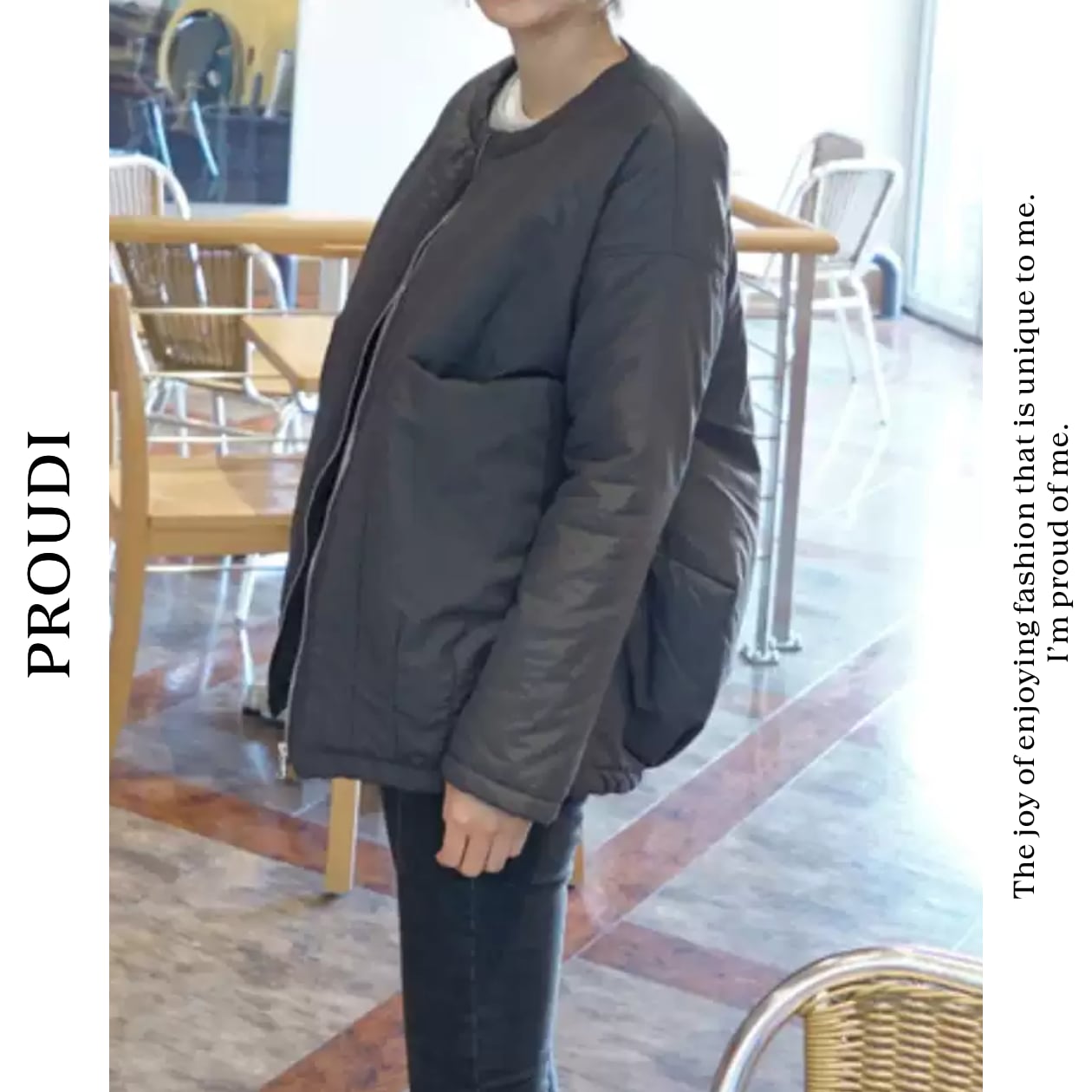スタンドカラーの中綿ジップアップジャケットは、一枚で着こなしが決まる優秀アイテム☆