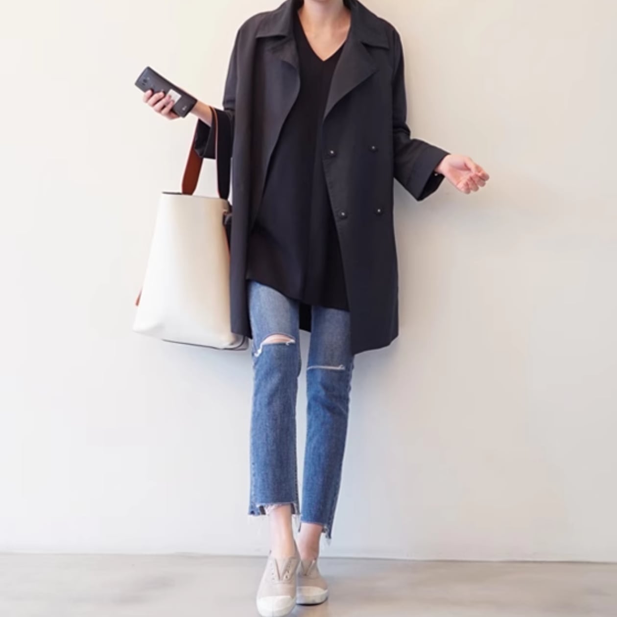 ロング丈でオーバーサイズのダブルブレストジャケットは、こなれた雰囲気を演出する優秀アイテム☆