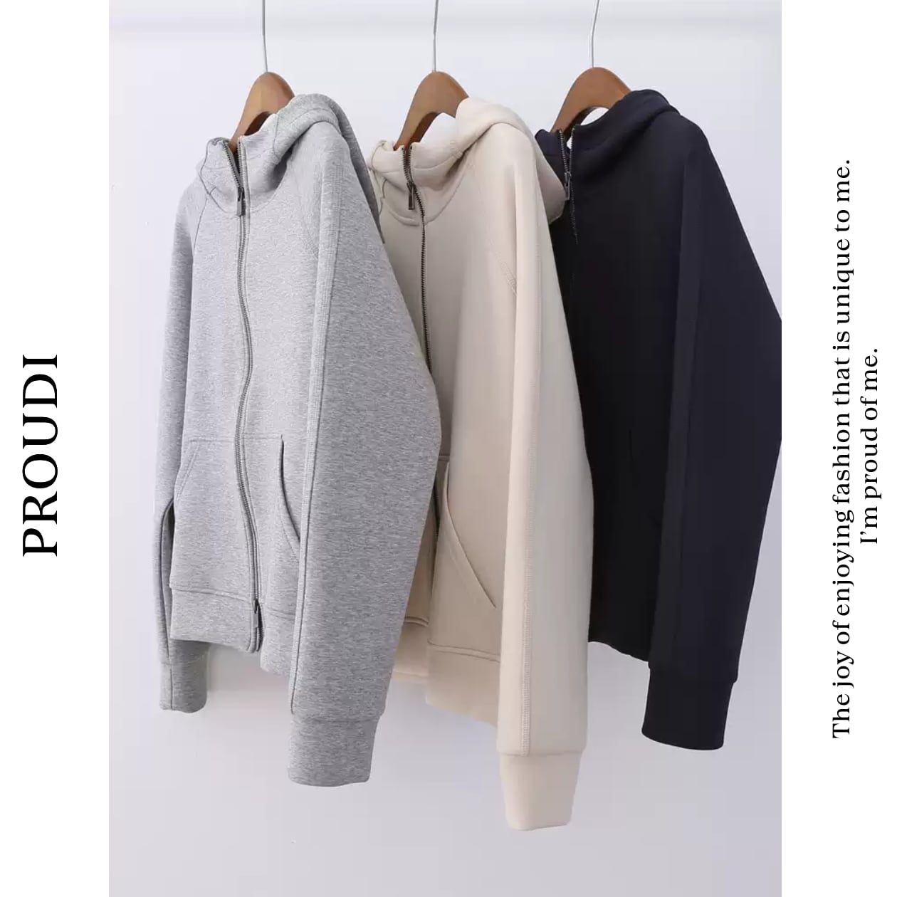 一枚で着てもサマになる、着回し力抜群のジップアップパーカーです。