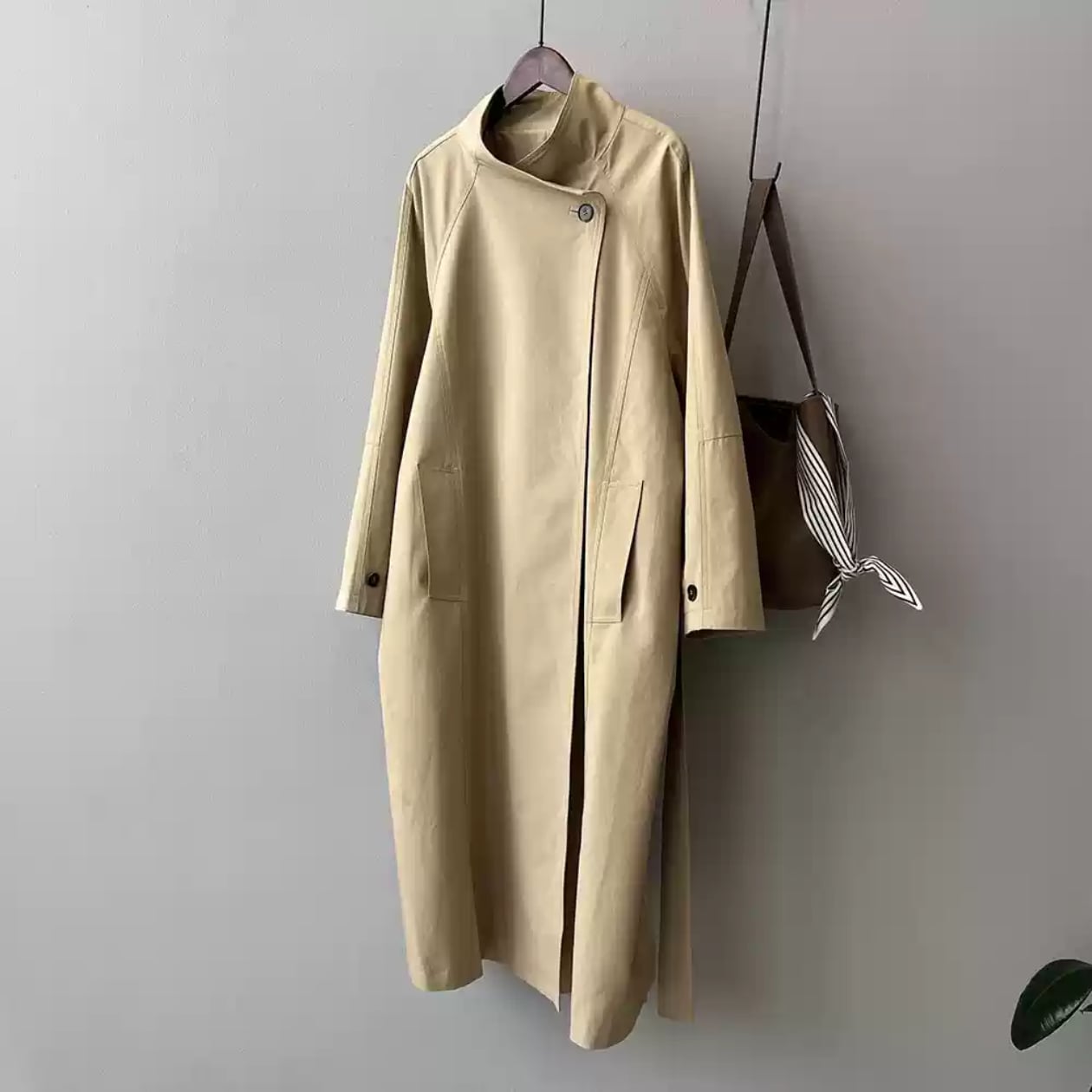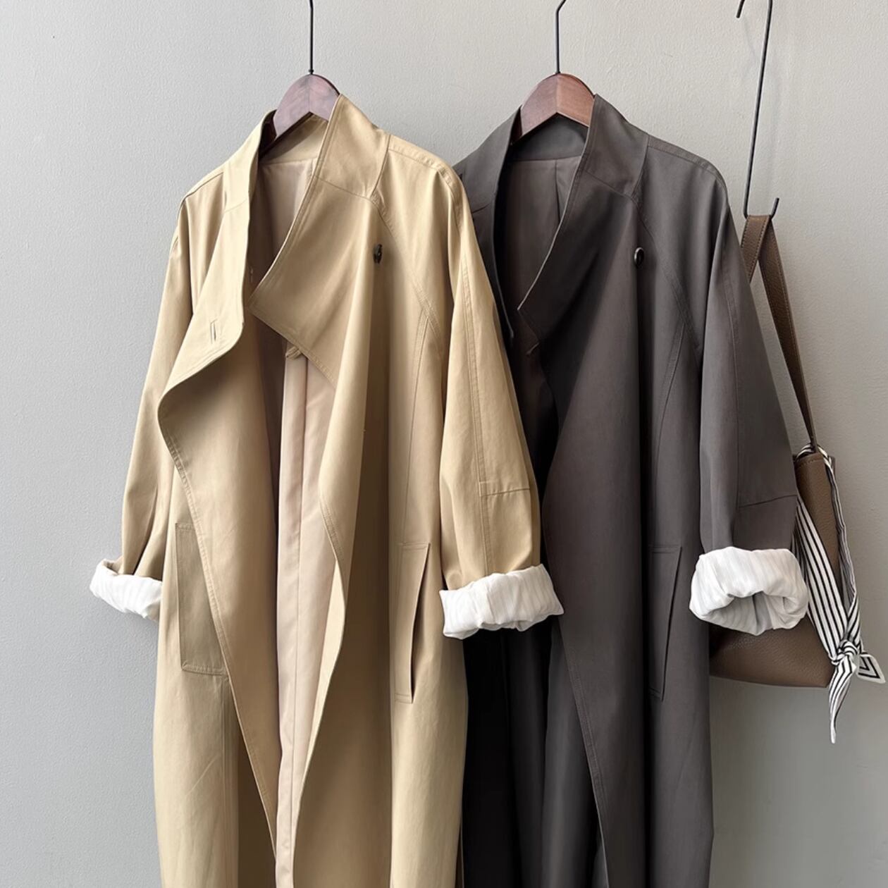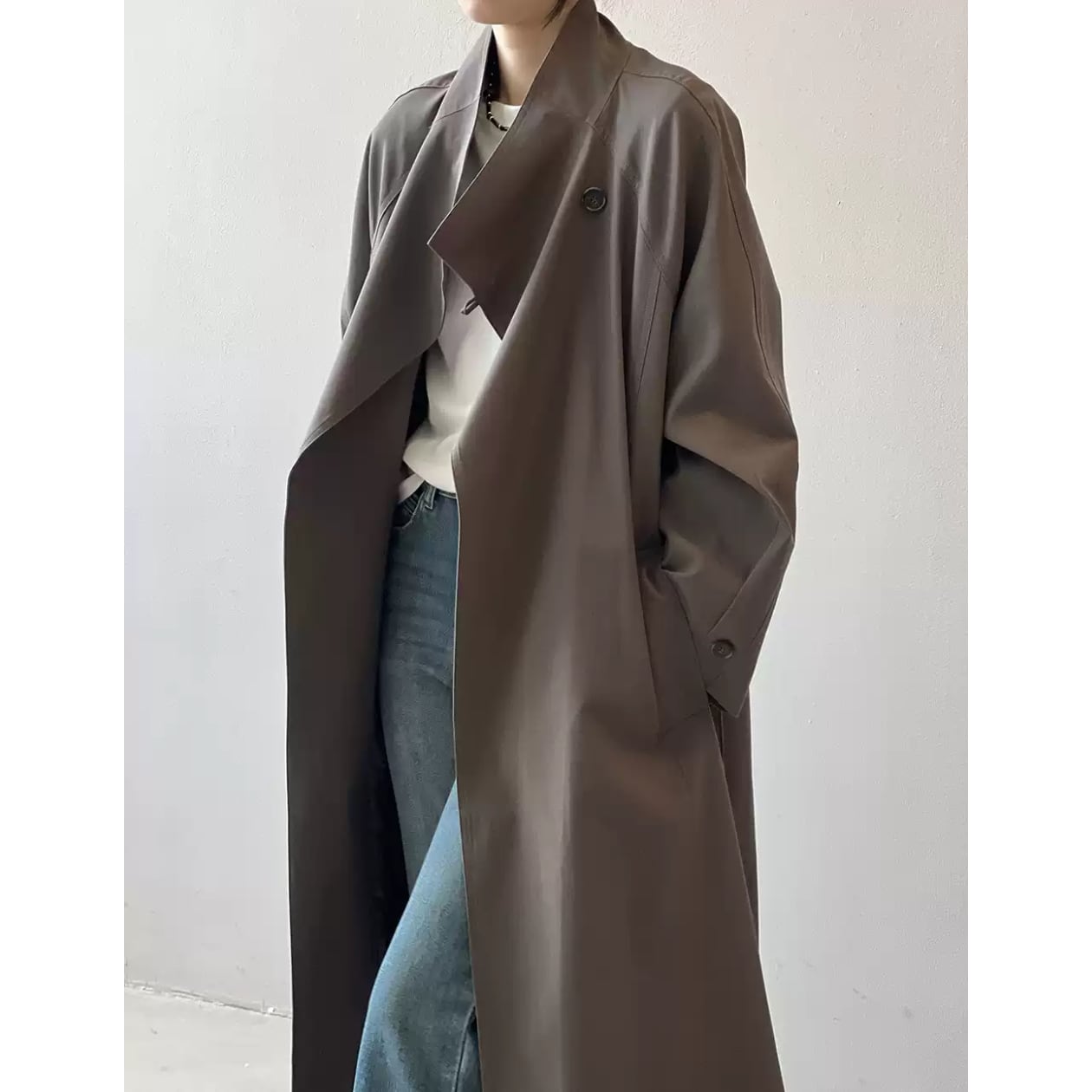 比翼仕立てのデザインが洗練された雰囲気を演出し、ロング丈が体型カバーにも効果を発揮します!