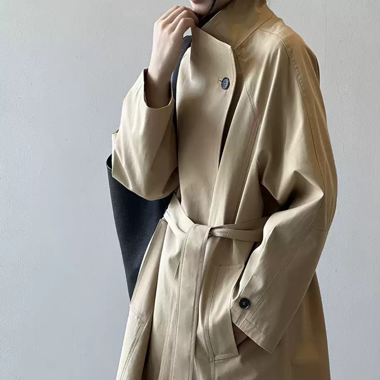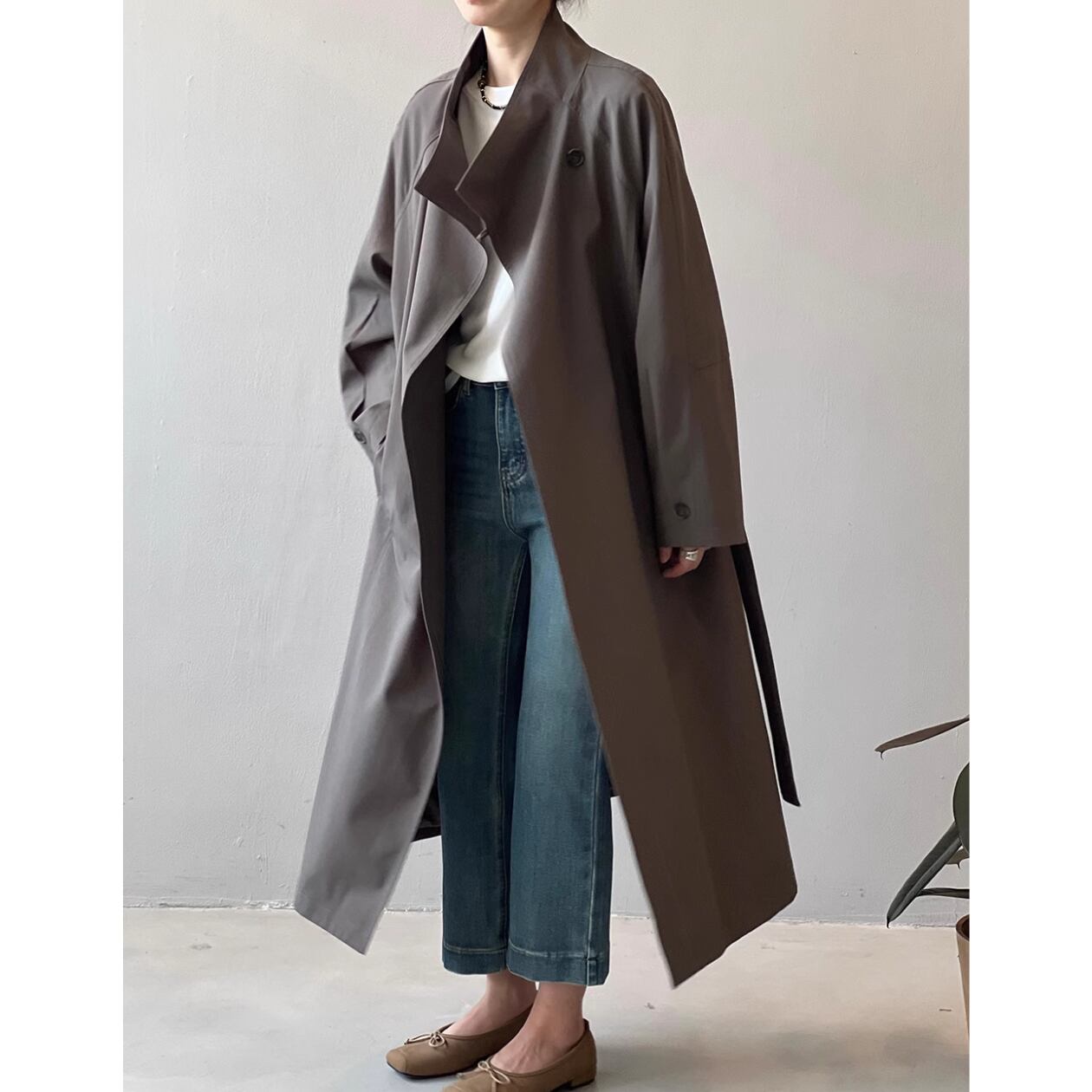 スタンドカラー比翼仕立てのロングジャケットは、一枚で着映えする優秀アイテムです☆