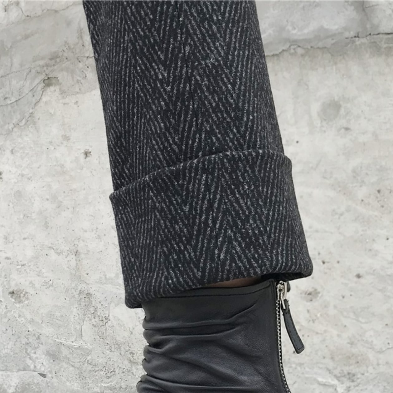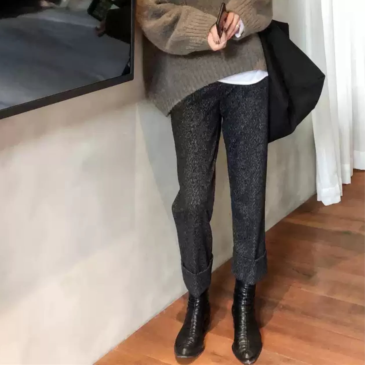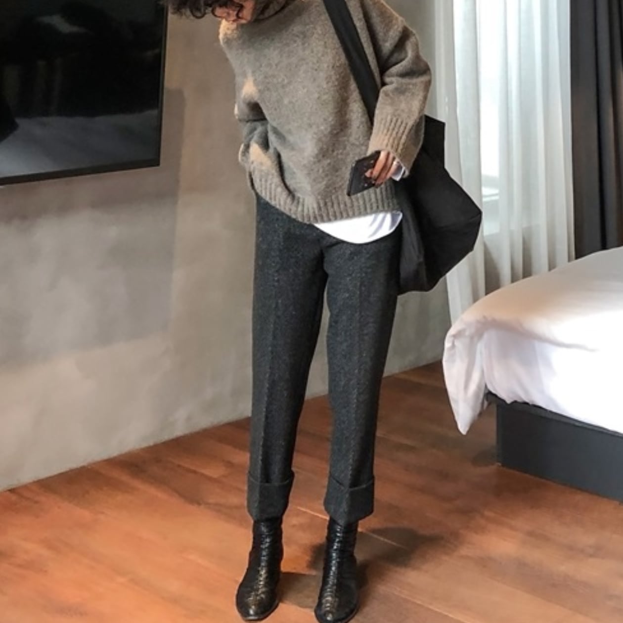 センタープレスとハイウエストのデザインが脚長効果を生み出し、スタイルアップを叶えます。