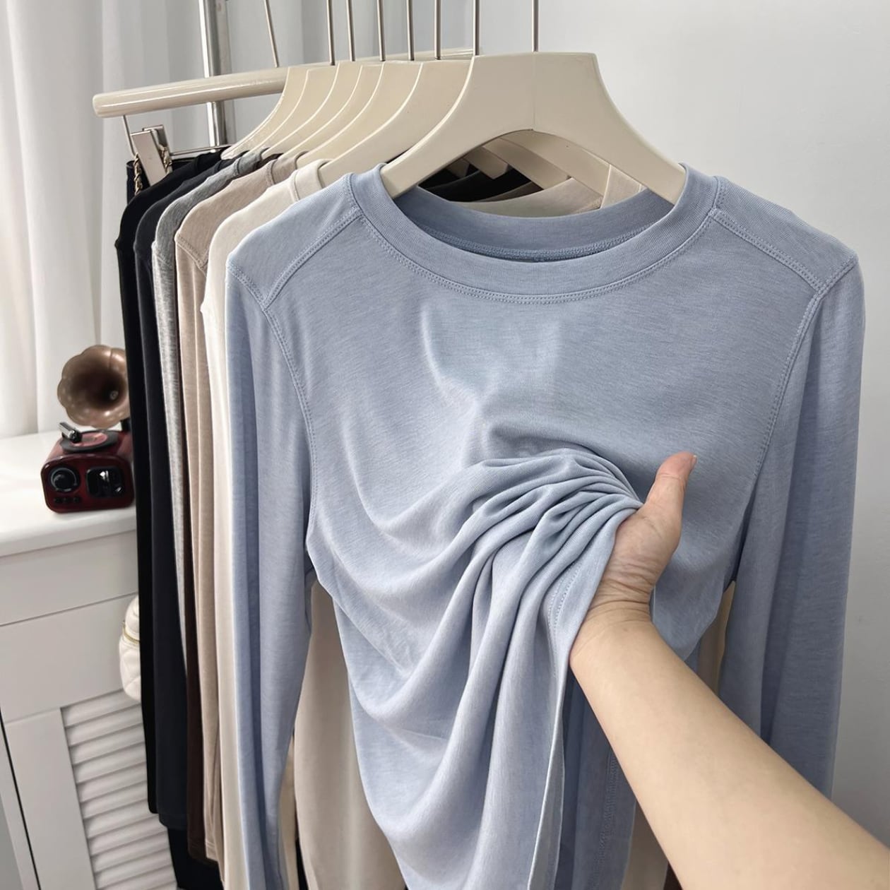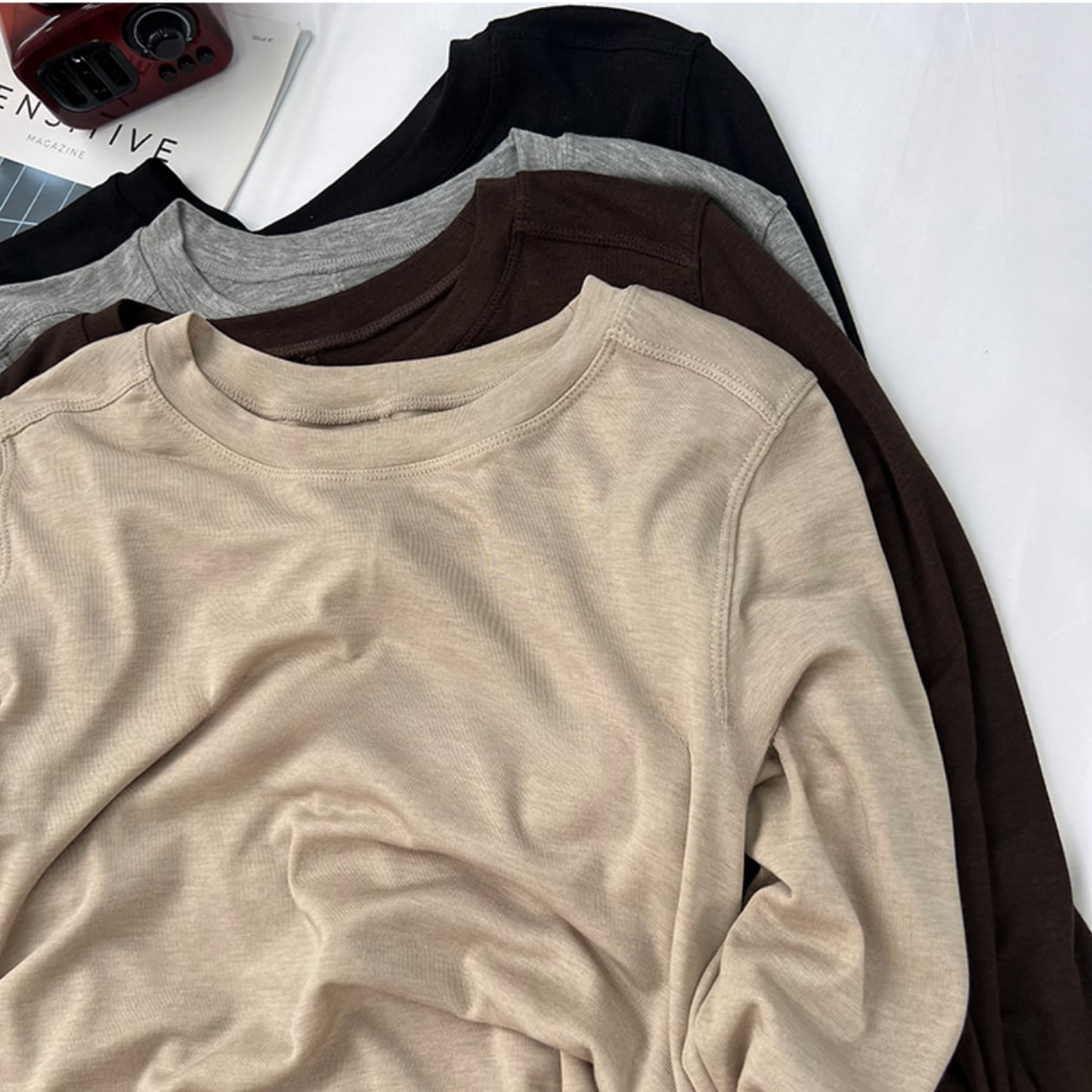 伸縮性抜群のロングスリーブクルーネックトップスは、一枚で着ても、レイヤードスタイルにも最適なアイテムです☆