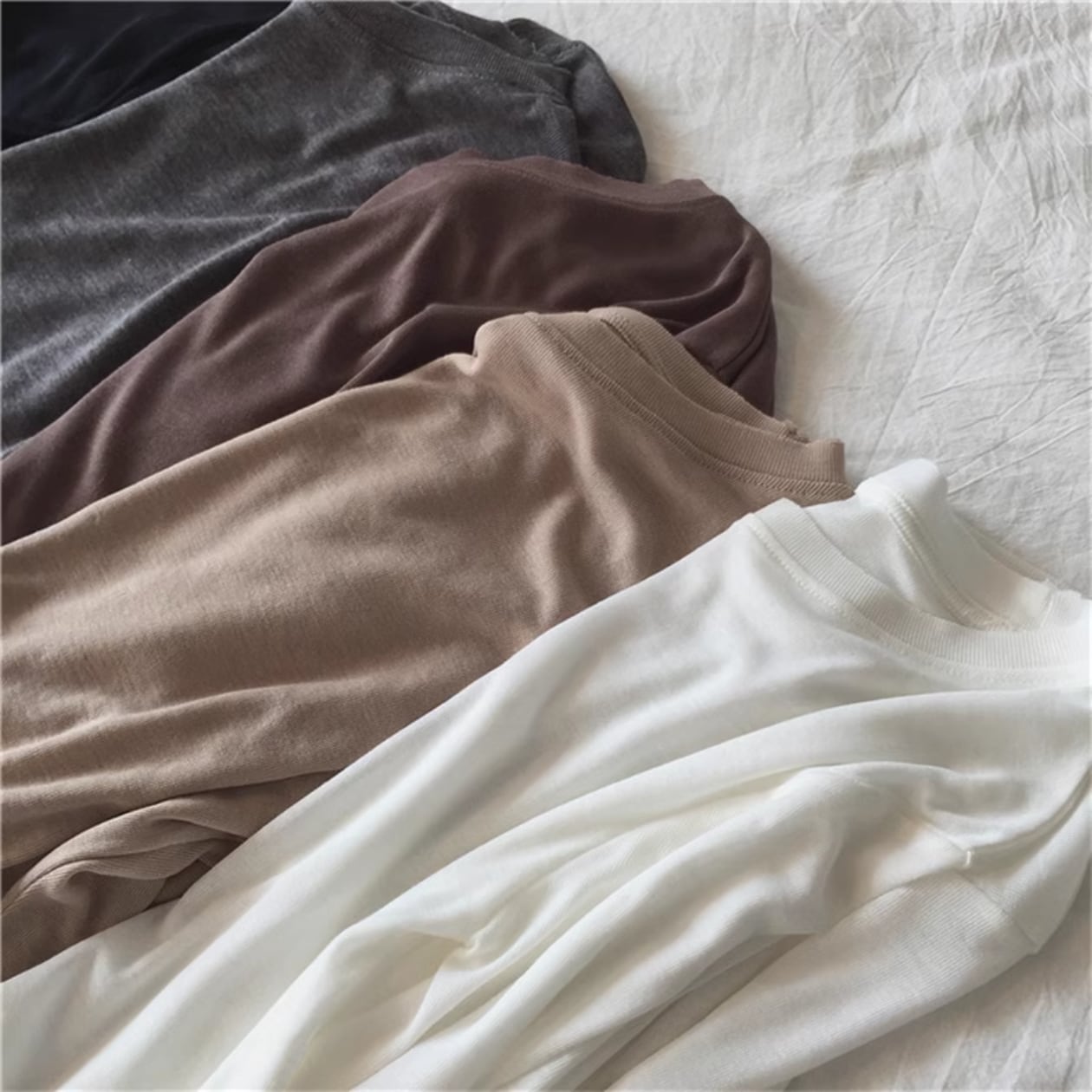 一枚で着ても、重ね着してもおしゃれなクルーネックロングスリーブトップス。シンプルなデザインでどんなスタイルにも合わせやすく、着回し力抜群です!